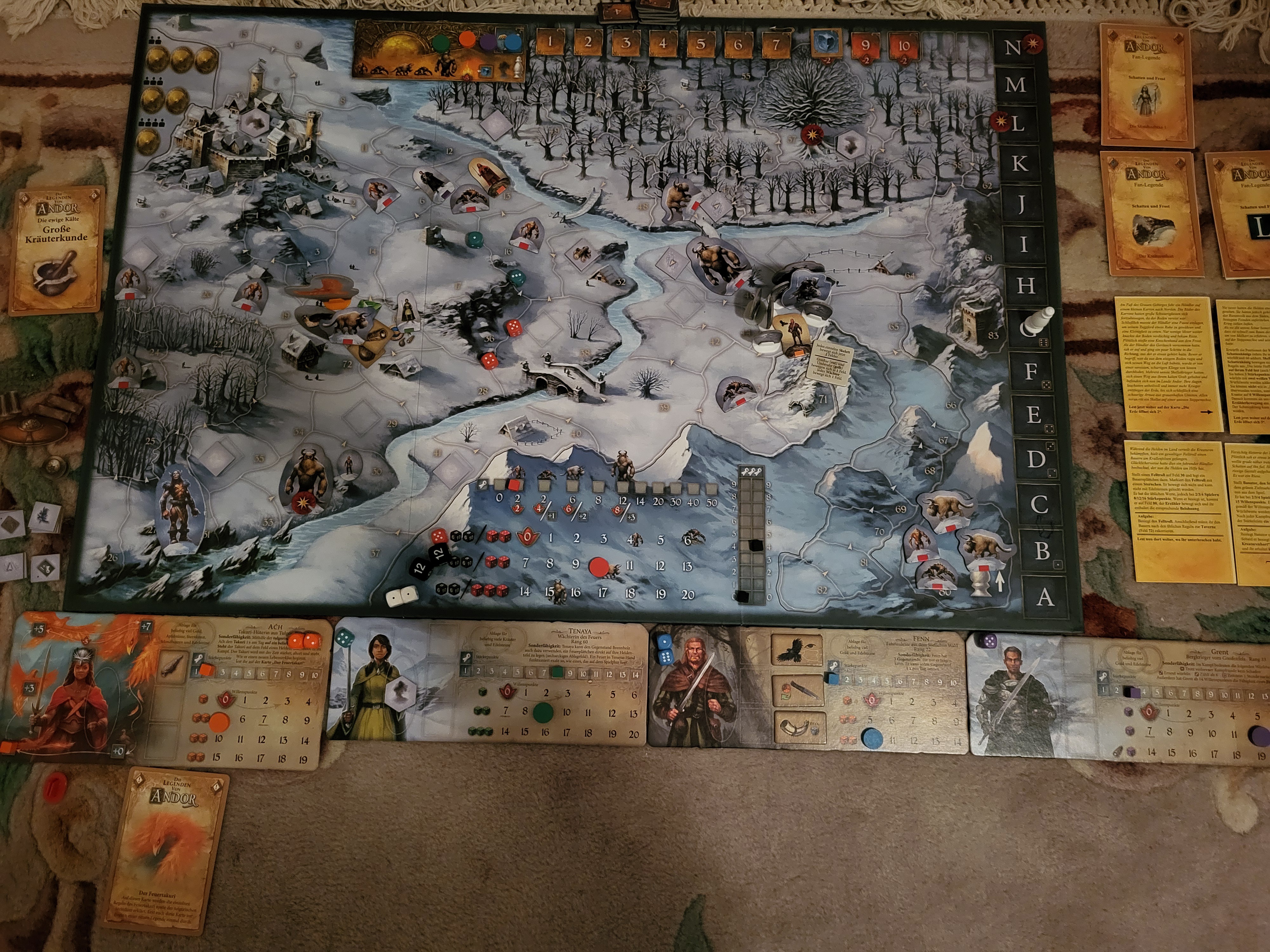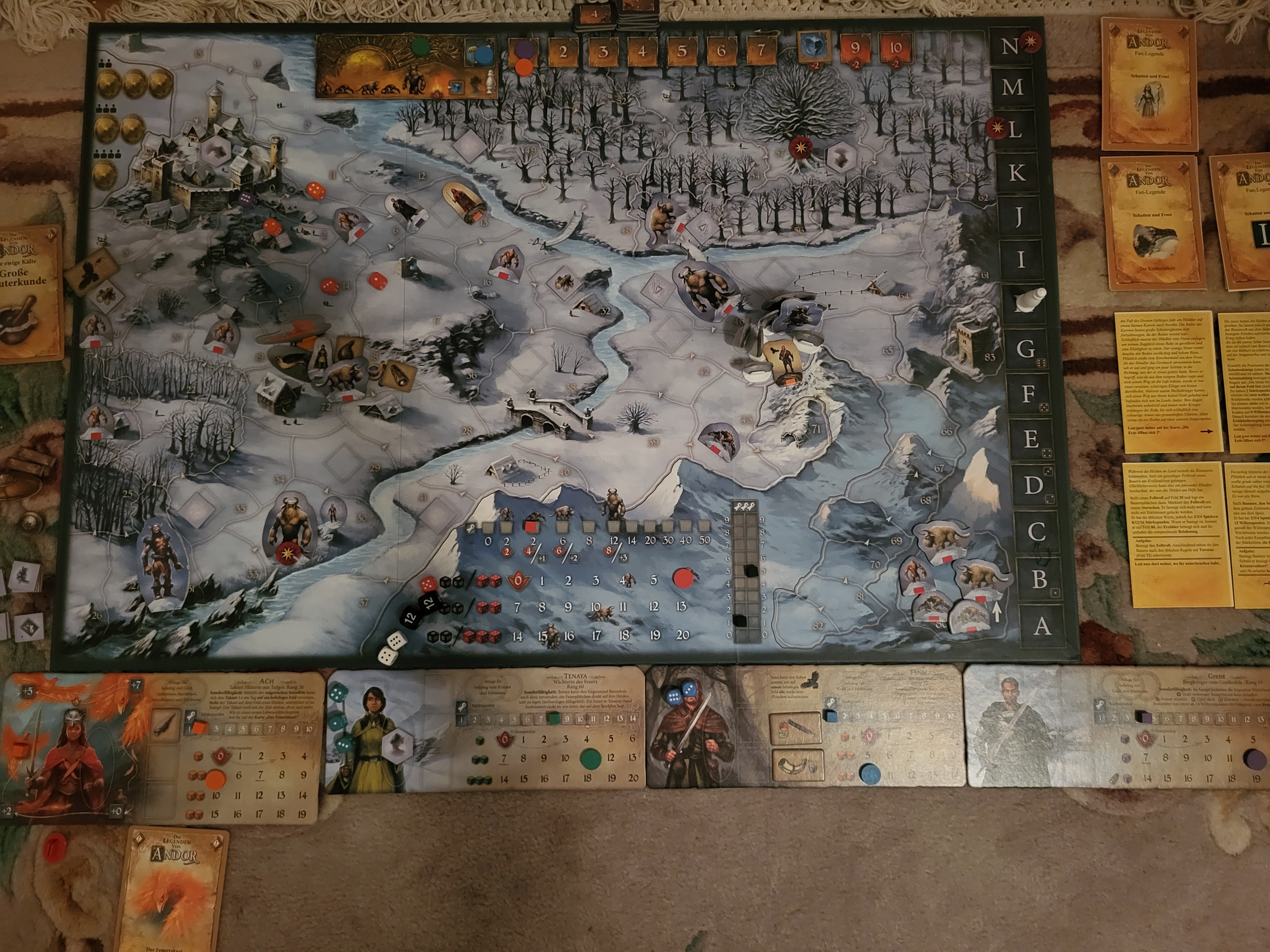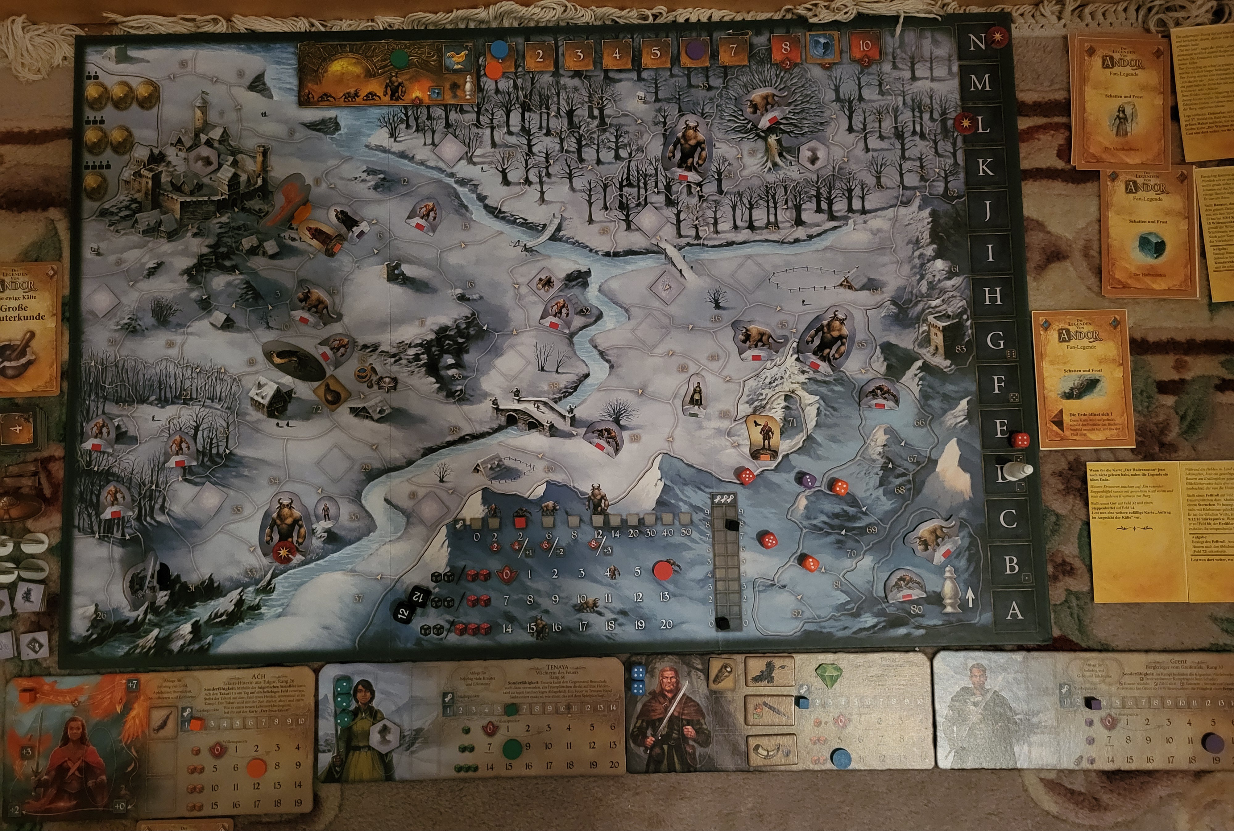 Ein Held muss zum Baum der Lieder (Feld 57) gehen. Dort erfahrt ihr das Legendenziel. Sobald ein Held dort steht, lest weiter auf der Karte „Der Schattenkönig“.