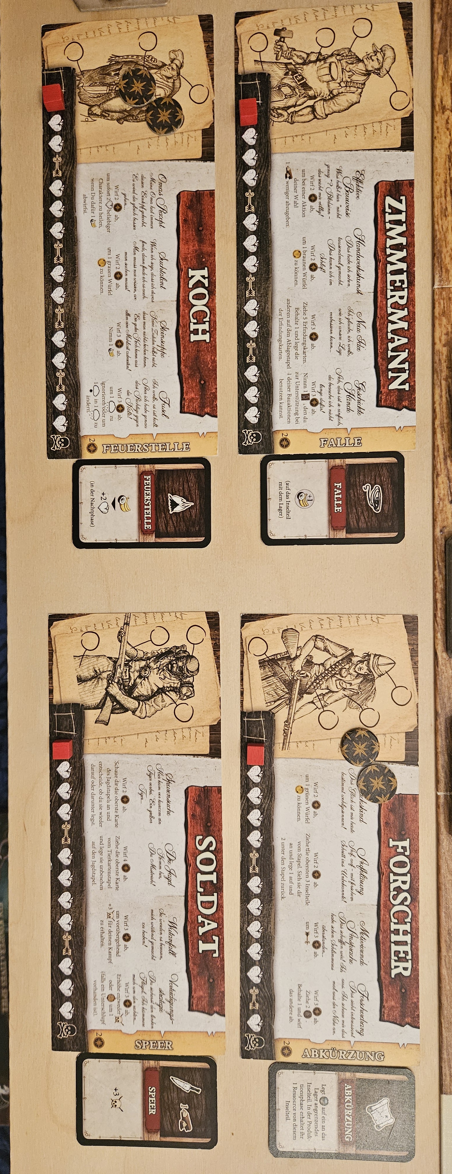 Abkürzung. Dadurch erhalten wir das Abkürzungs-Plättchen, das wir nach der Aktionsphase auf ein benachbartes Inselteil (der Strand würde sich da am ehesten anbieten) legen dürfen. In der Produktionsphase bekommen wir von diesem Inselteil eine weitere Ressource (die wir uns aussuchen dürfen). Außerdem erhält die Forscherin 2 Entschlossenheitsplättchen.