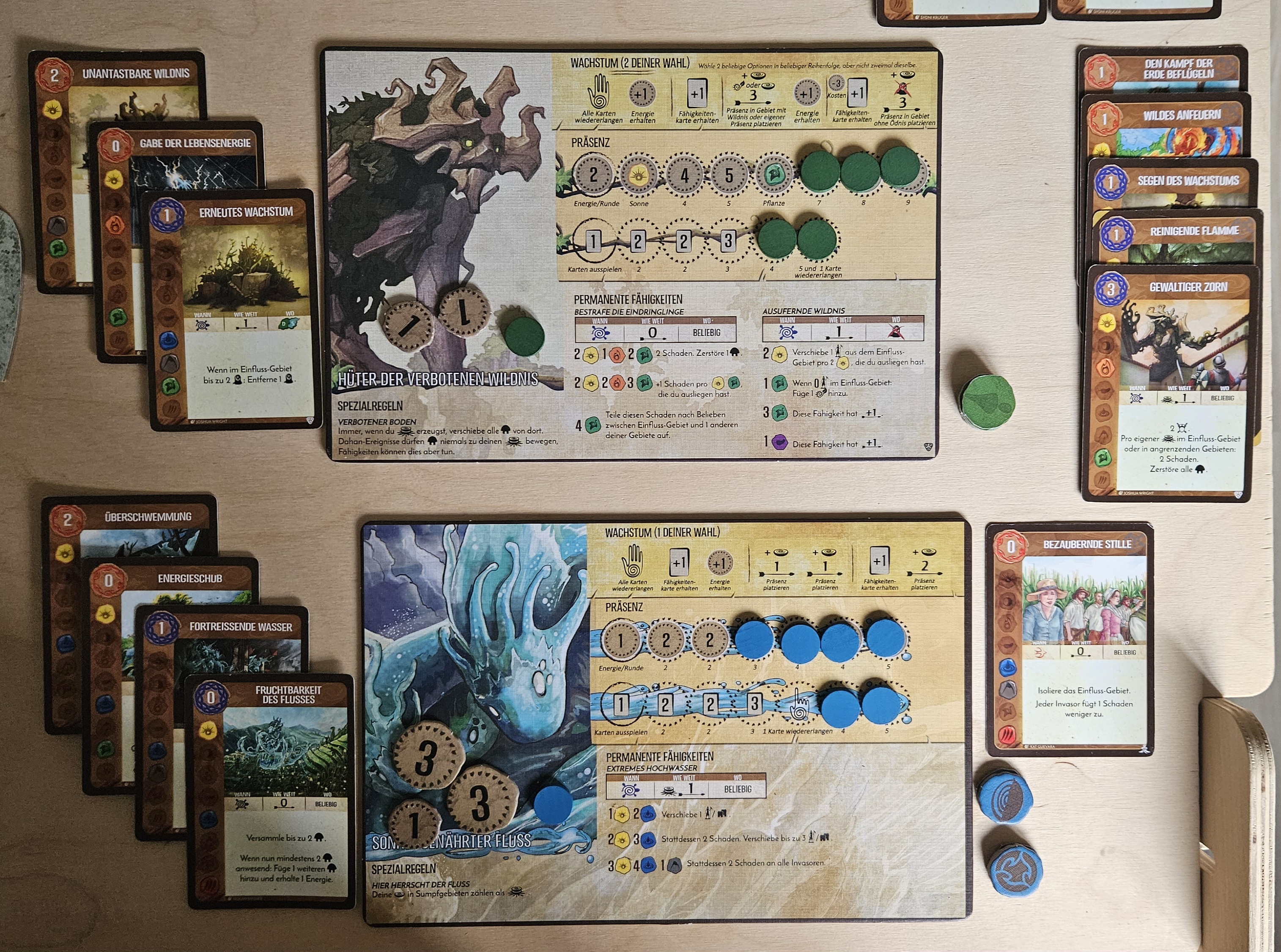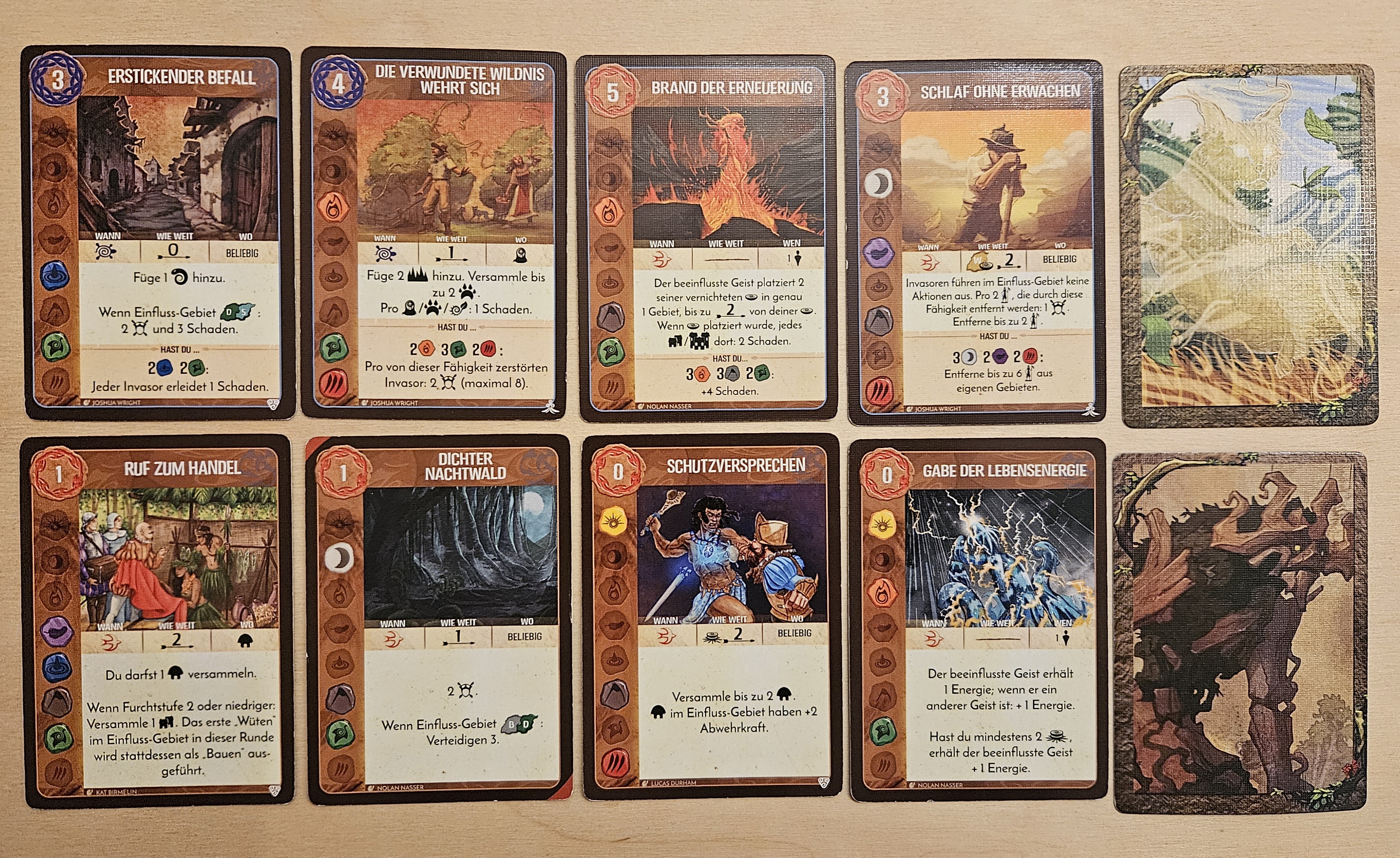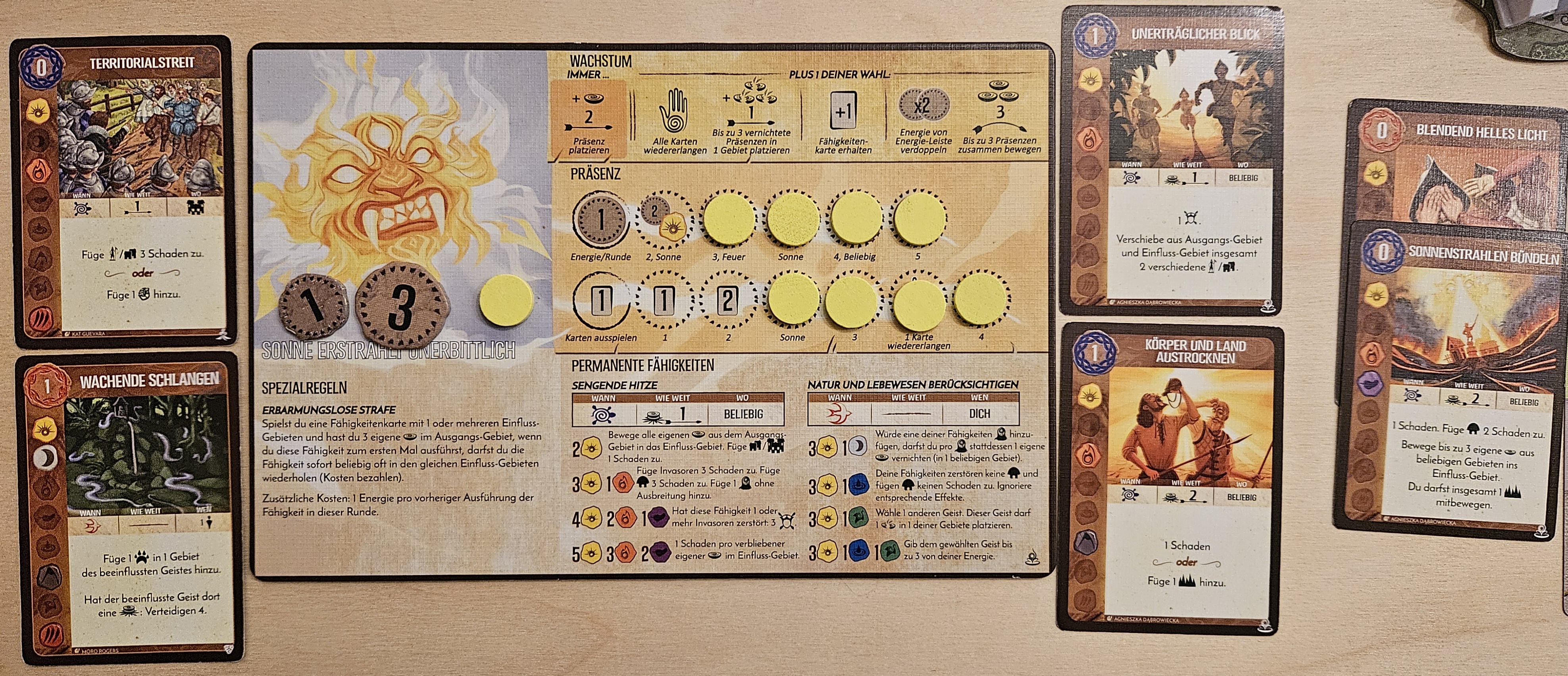 #Albus: Wie du jetzt gemerkt hast, mache ich es so, dass links vom Geistertableau die in dieser Runde ausgespielten Fähigkeit liegen. Rechts neben dem Tableau liegen die noch verfügbaren (wie bei der