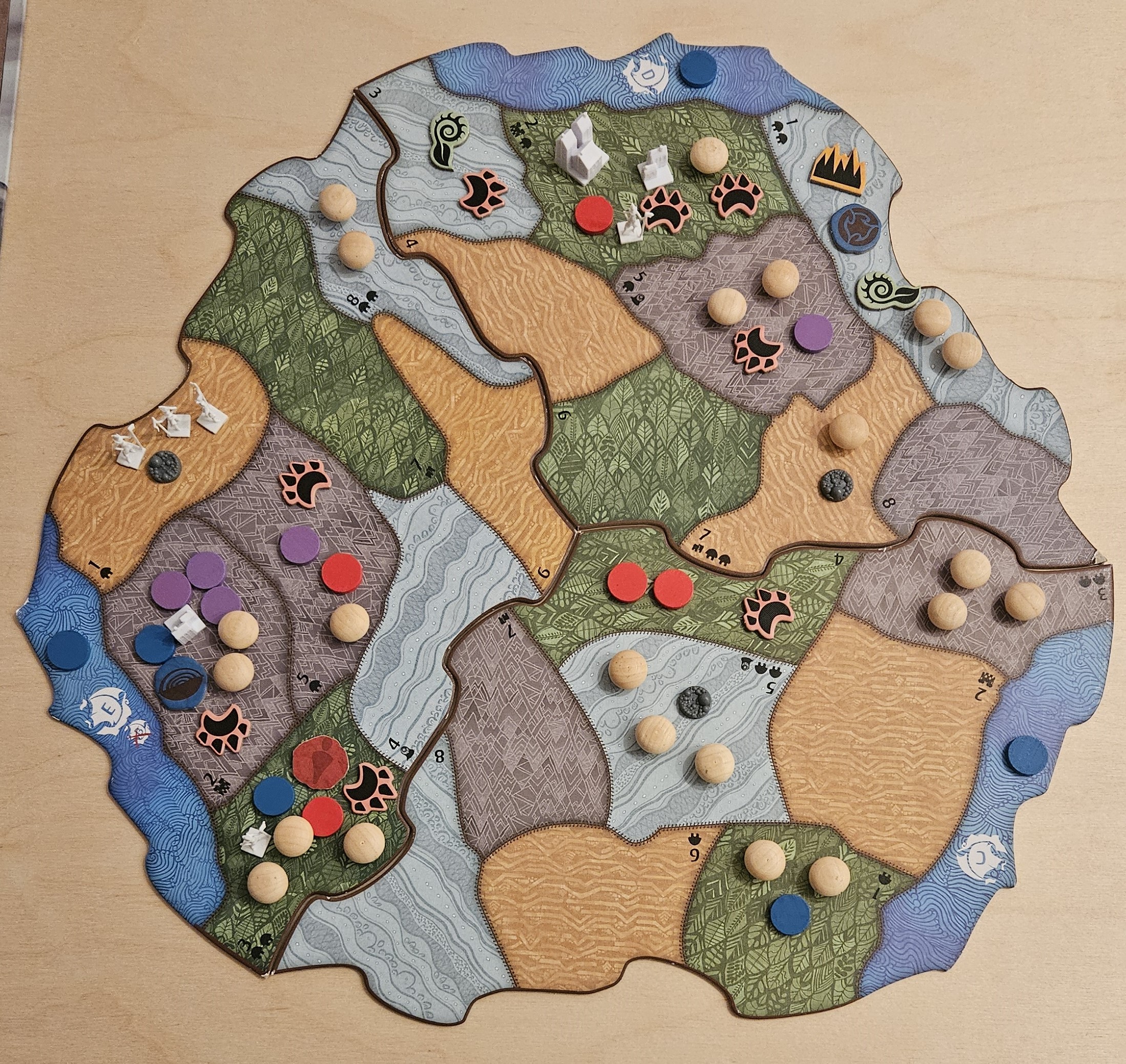 Dann würde ich jetzt mal sagen, wir setzen die 2. FK bei E1 ein und tauschen die beiden Dörfer in 4 Entdecker um. (+2 Furcht, 3/12)