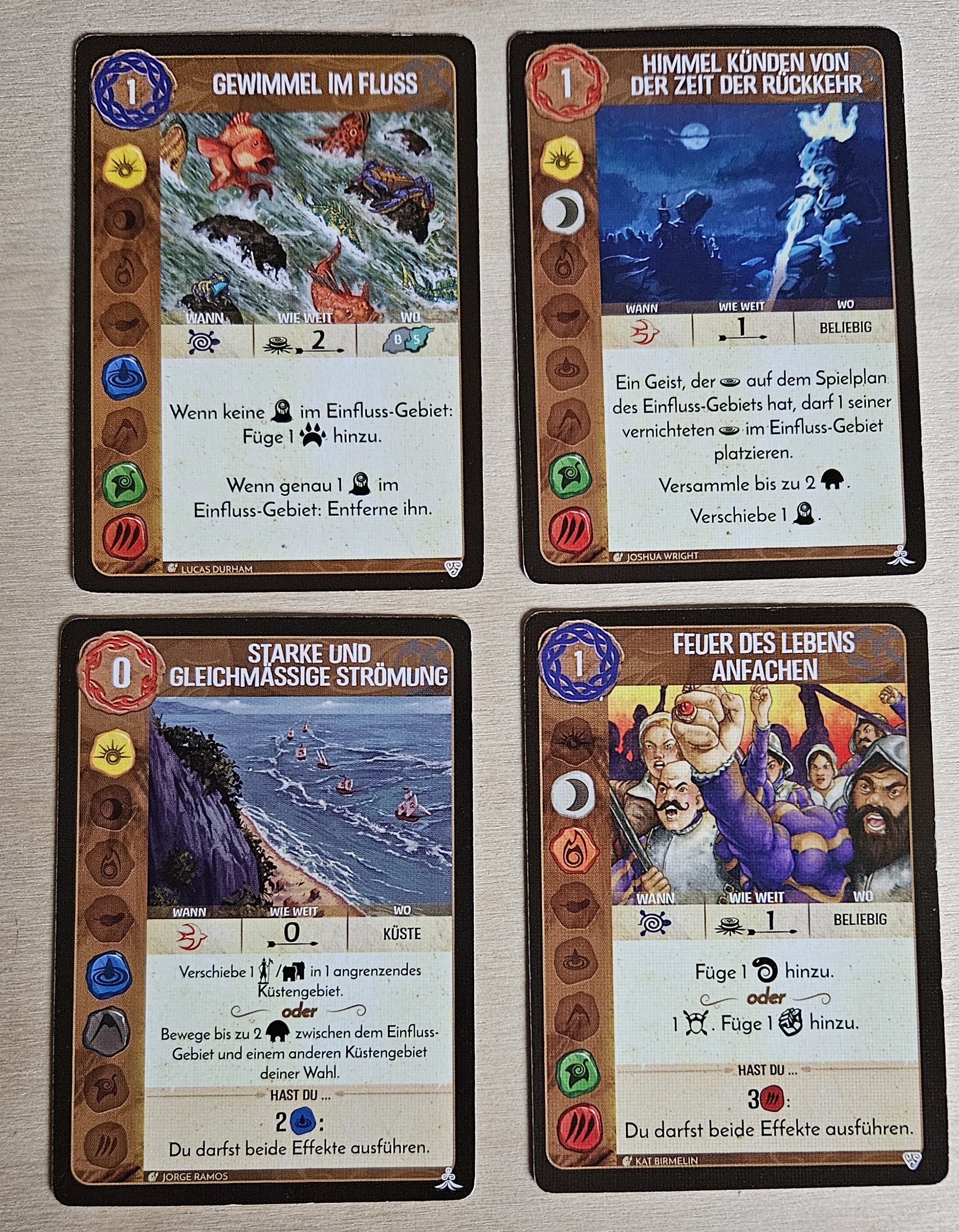 1 Entdecker mit Streitmarker, einen Entdecker ohne Streitmarker und 2 Dahan hinüberschieben (alle drei Zeilen aus Todeshauch). Dann kann Moai/Das Wispern die Stadt und 2 Entdecker mit Streitmarker zerstören.