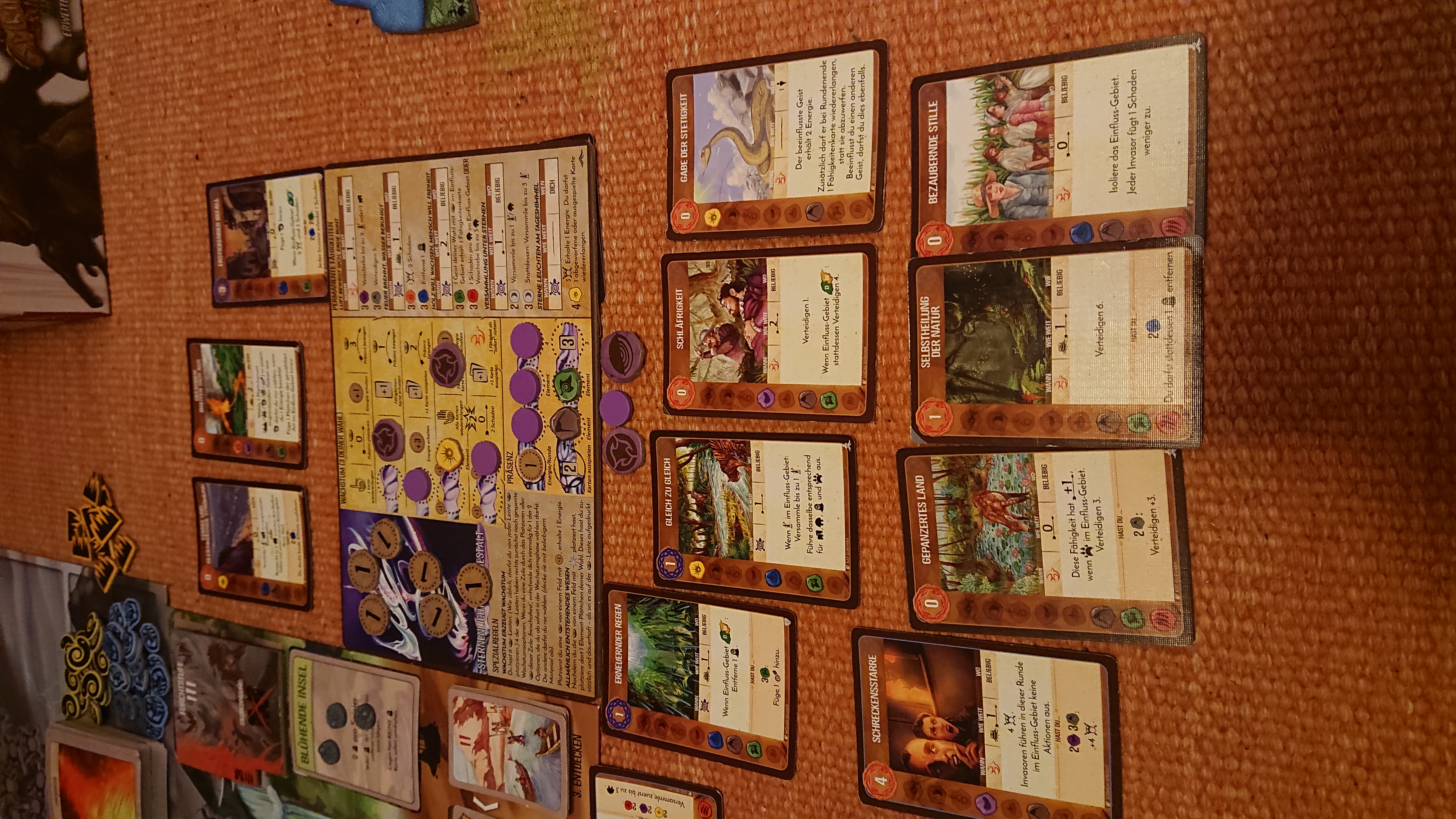 Danach hab ich mich noch an einer Solopartie SI versucht, ohne Nation, aber mit dem Szenario der vielfältigen Landschaften. Gespielt habe ich mit Urgedächtnis und Verlockung.