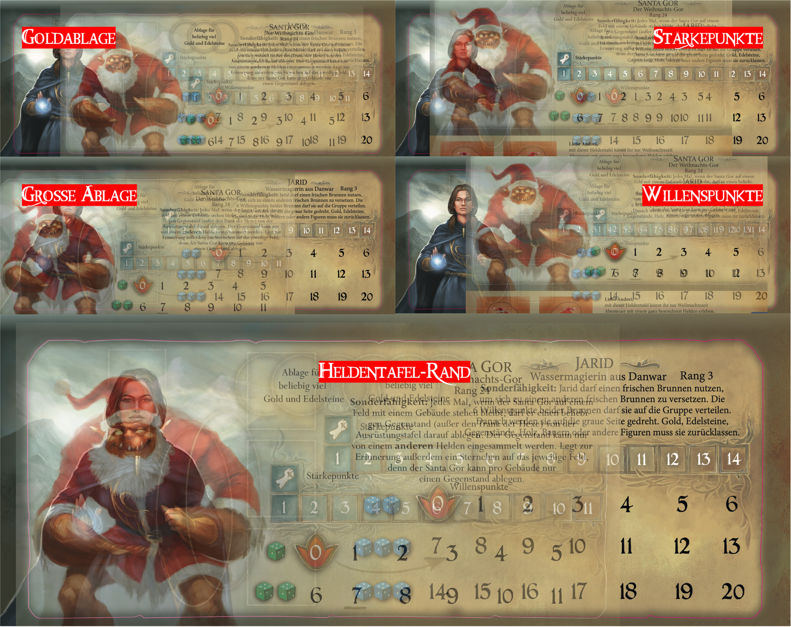 – Und nicht zu guter Letzt hat im Santa-Gor-pdf das Gebiet rechts der Heldentafel einen helleren Hintergrund, als sollte die Heldentafel dort noch weiter gehen.