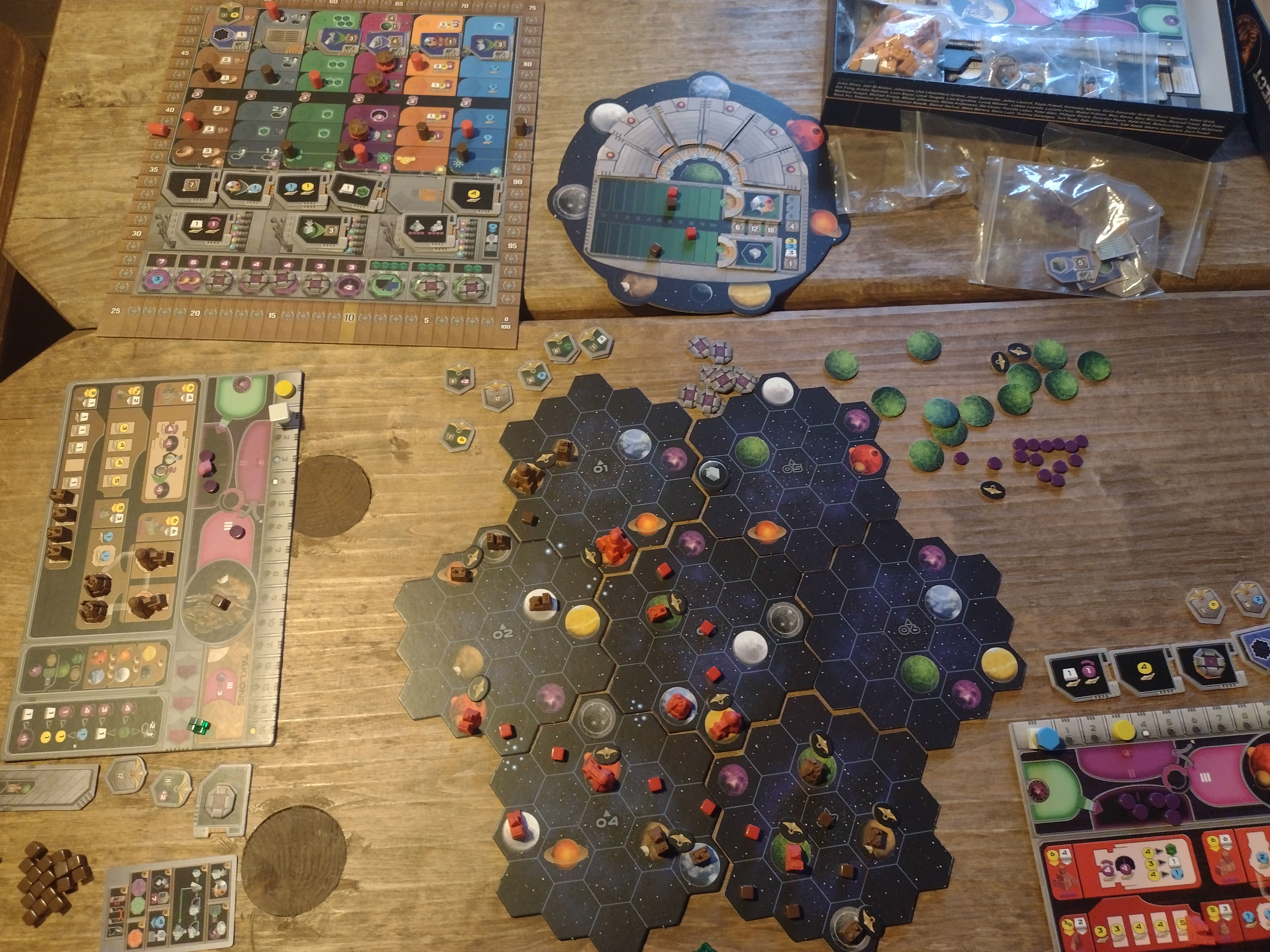 In der Schlusswertung hatte ich mit den Taklons gemeinsam die meisten verschiedenen Planetenarten und mit dem fiktiven dritten Spieler die meisten Satelliten. Ganz okay.