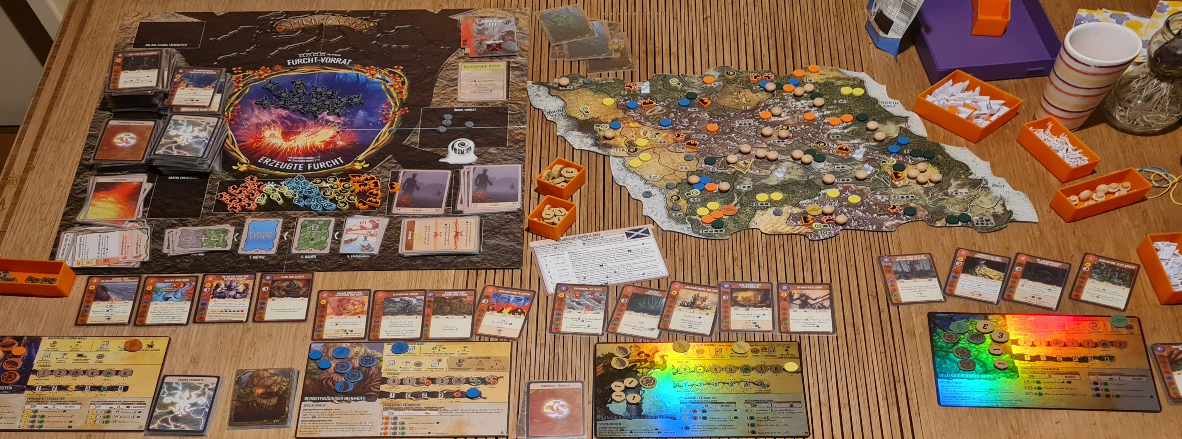 So, nach 3 Partien Andor Junior und 1 mal Kampf um Hogwarts mit dem Kleinen Prinzen hab ich jetzt noch 6 Stunden an einer Partie SI gespielt, mit den Tiefwurzeln, dem Behemoth, dem Hüter und dem Wild Wuchernden Grün.