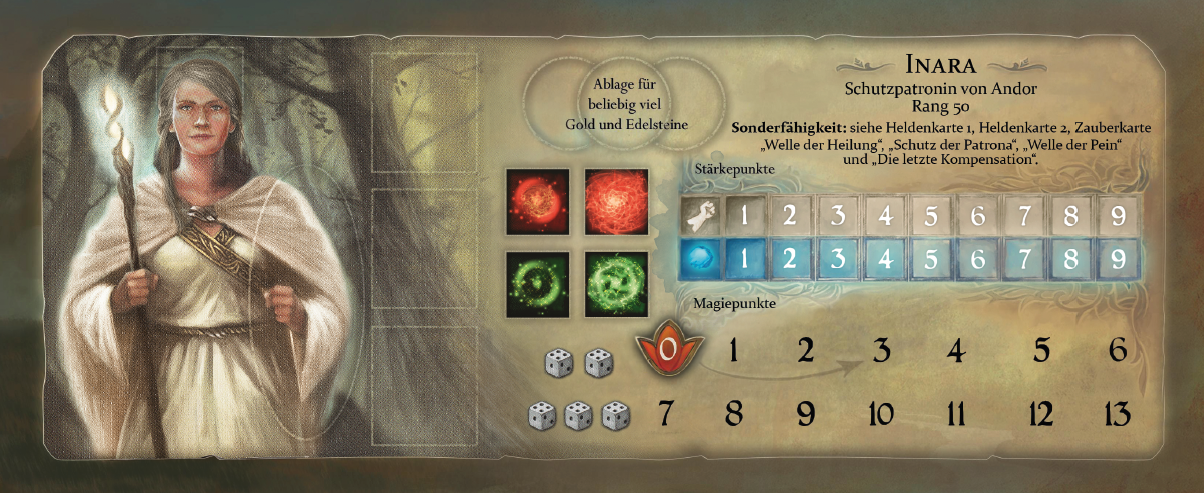 "Welle der Heilung": Sehr effektiv, um Helden mit vielen Würfeln schnellstmöglich auf ihre Höchstanzahl zu bringen oder sich selbst nach "Die letzen Kompensation" wieder zu heilen.