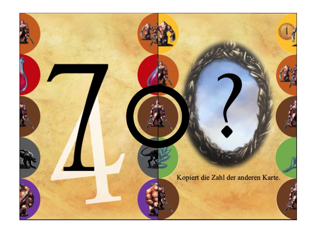 Ich bin überhaupt kein Experte für endliche affine Ebenen, aber ich glaube, so eine Konstruktion wie in diesem Prototypen für 9 Karten mit je 4 Symbolen sollte auch für bis zu 16 Karten mit je 5 Symbolen möglich sein, oder für bis zu 25 Karten mit je 6 Symbolen, oder für bis zu 49 Karten mit je 8 Symbolen. Bei einer höheren Kartenanzahl könnte man natürlich weitere Ziffern einfügen (z.B. eine 9, die bei Konflikten zu einer 2 wird?) und die Ziffernverteilung anpassen, dass z.B. besonders viele 3en und 4en vorkommen. Außerdem könnte man bei einer höheren Kartenanzahl gewissen seltenere Belohnungen oder seltene besonders üble Kreaturenketten ergänzen.
