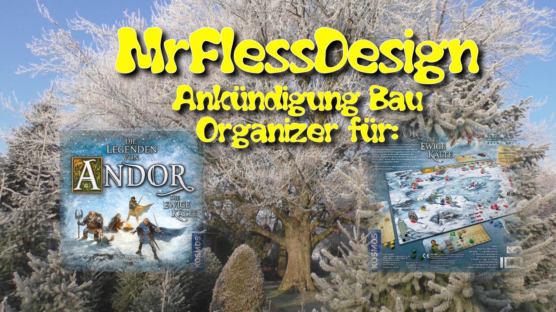 Heute möchte ich mich an alle Andor-Fans wenden und Euch eine kleine Überraschung ankündigen. Aus dem Hause von MrFlessDesign wird es demnächst einen kompatiblen Organizer für das gerade erschienende Brettspiel Die Legenden von Andor "Die ewige Kälte" geben.