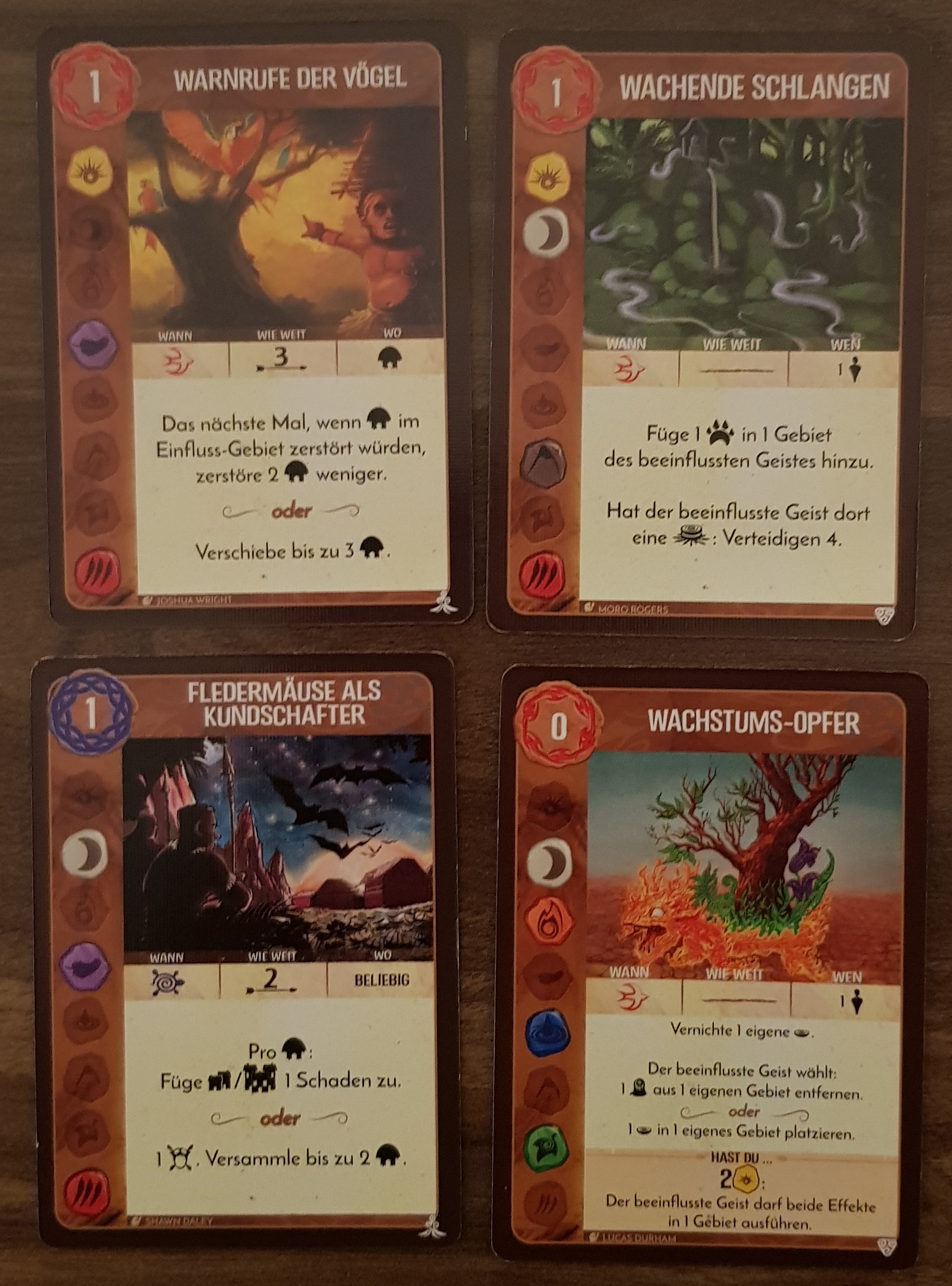 Zu den Fähigkeiten-Karten: Ich hoffe auch sehr, dass ich zumindest eine Karte mit Tier-Symbol bekomme. Dann könnte ich zusätzlich meine permanente verzögerte Fähigkeit einsetzen. (Letzte Runde ging leider nicht, weil ich ja eine Karte abwerfen "musste". :| )