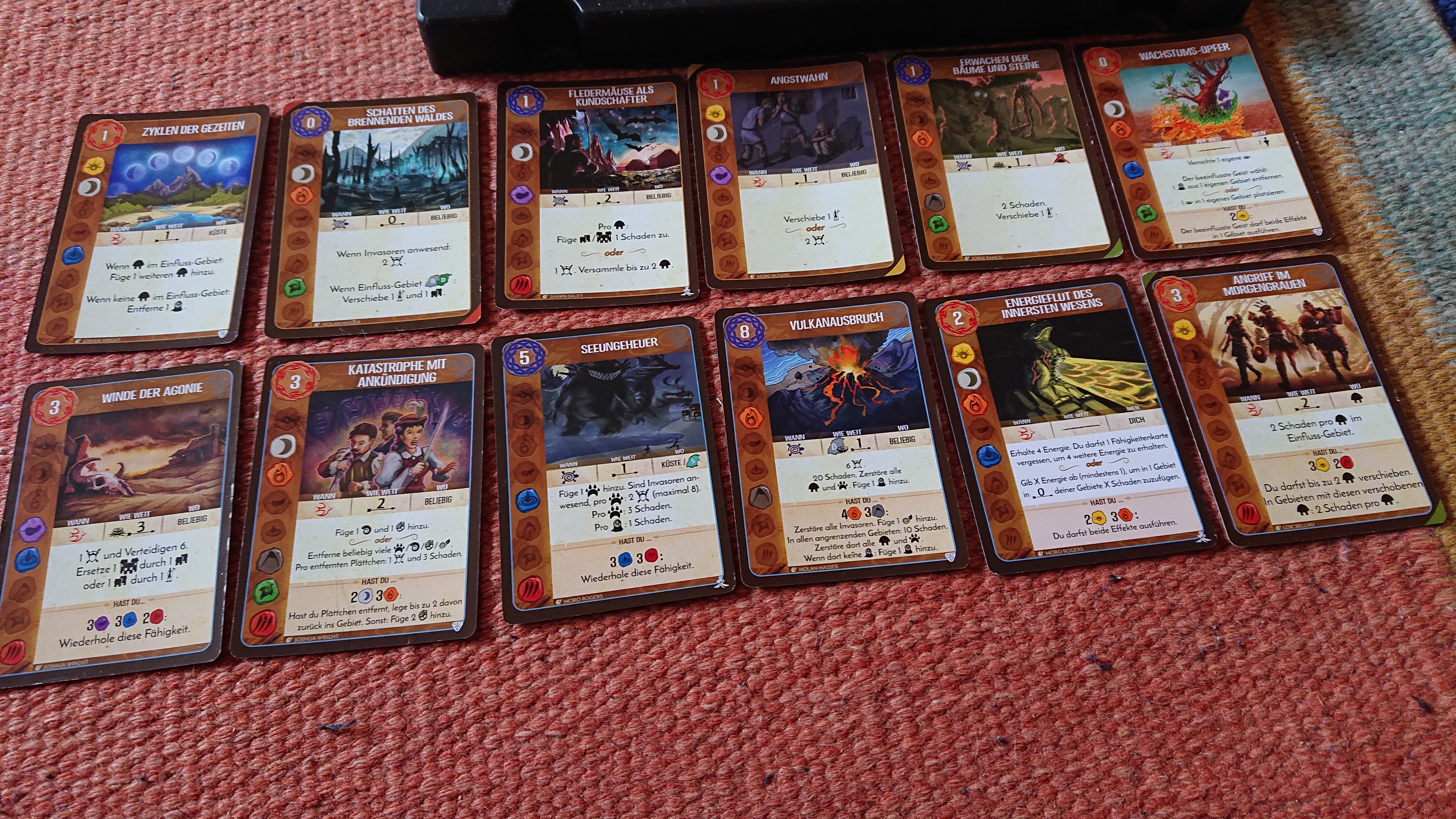 Ich konnte 2x Angriff im Morgengrauen spielen und so alle Invasoren bis auf die im Dschungel zerstören:
