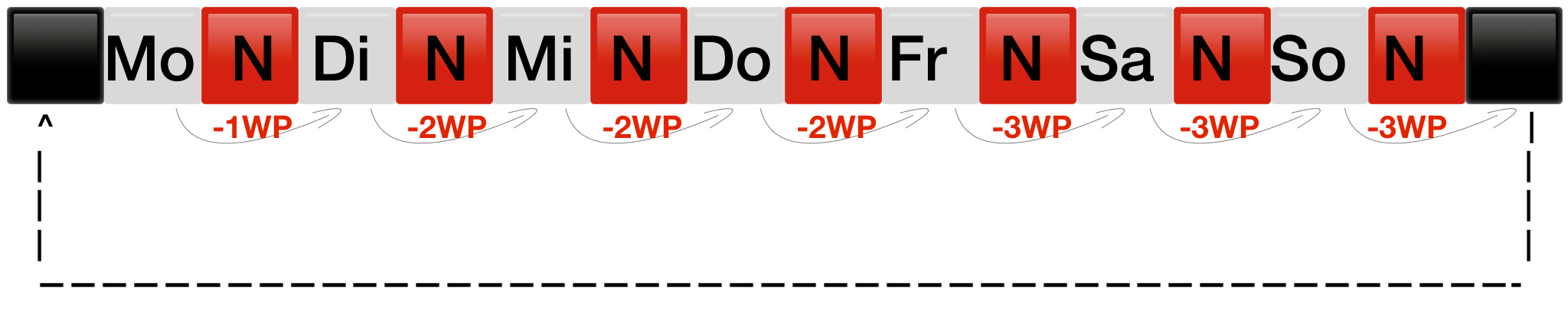 Und statt Überstunden gibt es je einen Über-Tag ("schlaflose Nacht"?) zwischen den Tagen, die man als Held jeweils entweder nehmen oder überspringen kann? Dann gäbe es insgesamt mehr mögliche Übertage, dafür muss man sich schon früher entscheiden, ob man sie nehmen will?