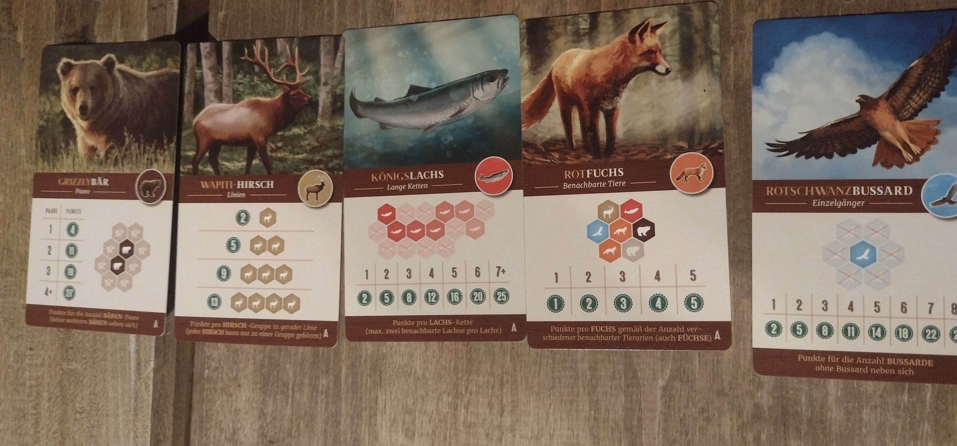 Was ich neulich aber noch Mal spielen durfte: Cascadia. Eine Partie mit zwei guten Freunden, die ich dann mit 96 Punkten (gegen 97 und 100) verloren habe :cry: