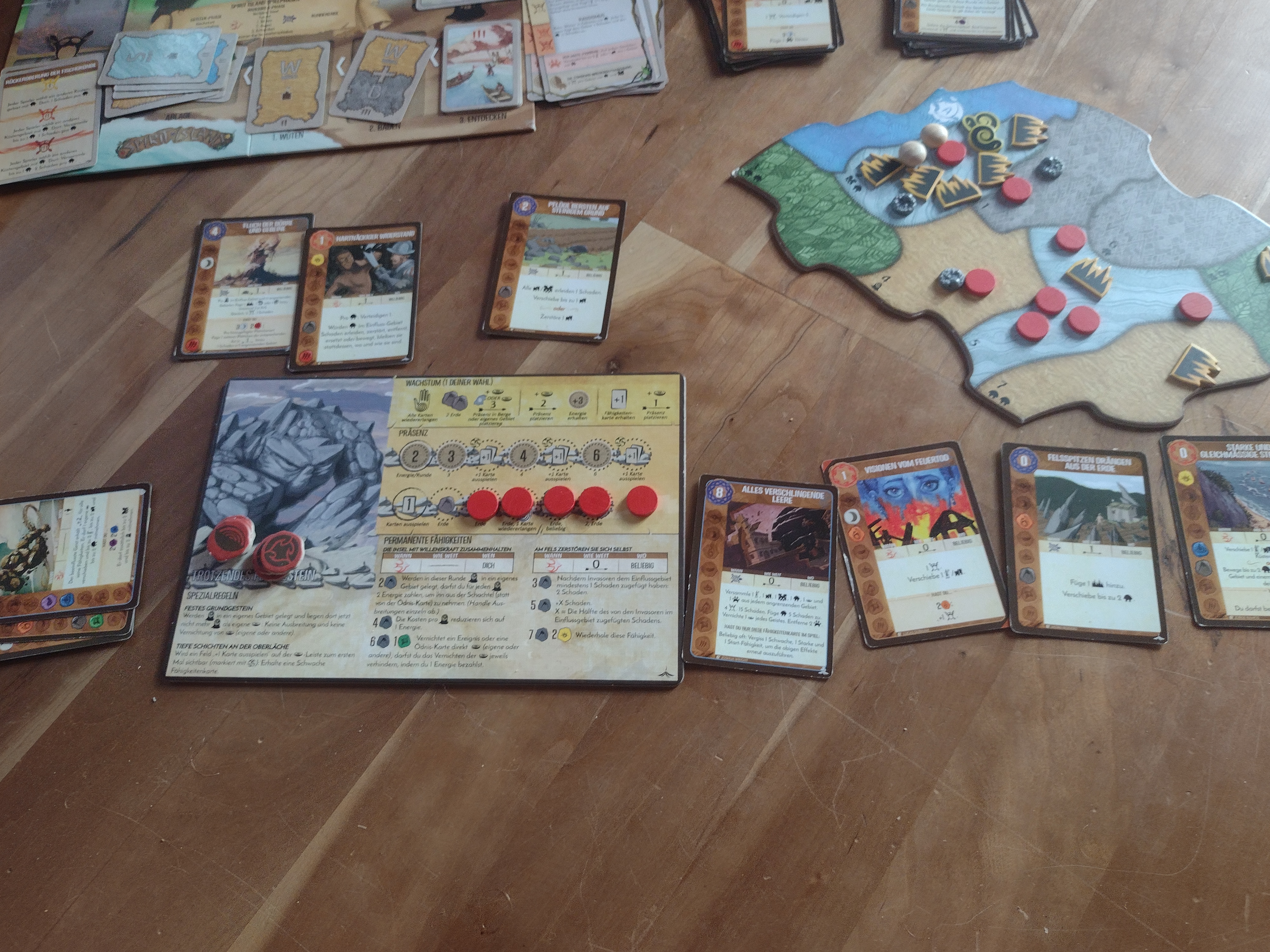 Der alte Wanderer hatte sich gut vorbereitet und nach Rücksprache mit dem Butterbrotbären auch einiges an Gastspielen vorbereitet. Und wir haben zwar leider nicht seine neueste Legende von Andor probegespielt, das wurde das Wochenende davor noch von einem Teil der fälkischen Hilfsgarde gemacht, als Galaphil unterwegs war, aber ich konnte vier aktuelle Spiele vorstellen.