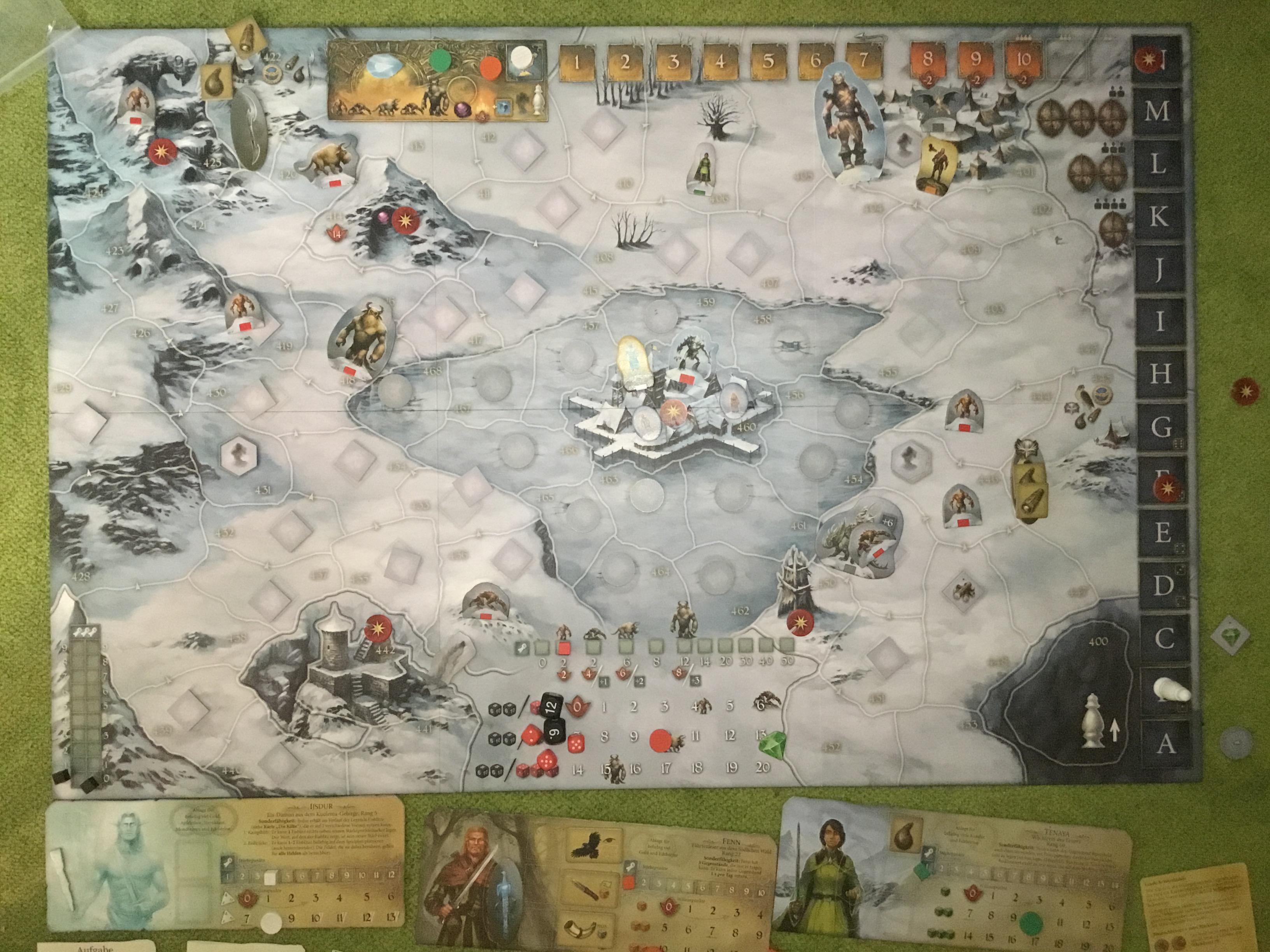 Legt den Geheimgang zwischen Feld 442 und 436. Legt zwei Iquar auf Feld 460.