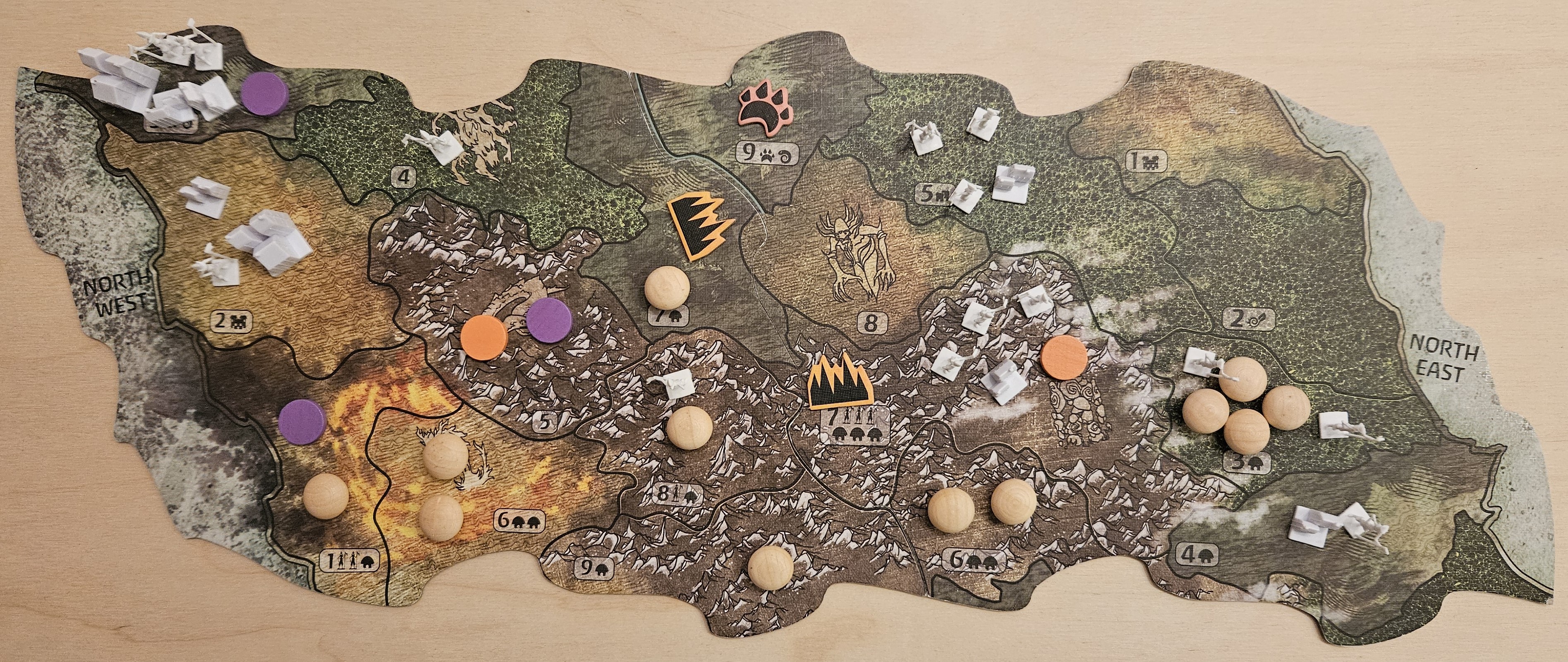 2F1E2T: 1 Schaden nach NW3+ 1 Schaden Territoriale Aggression-> Dorf zerstört.