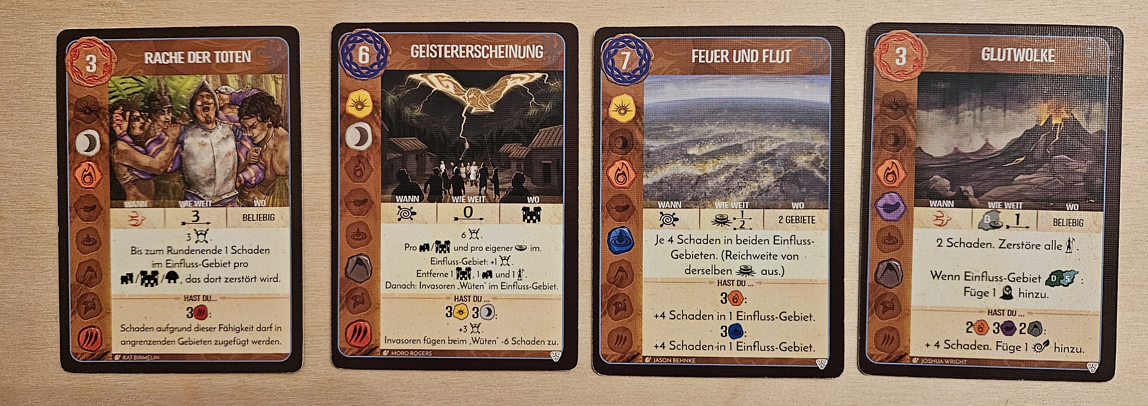 - In E2 insgesamt 5 Schaden auf das Gebiet bei 4 Verteidigung: 1 Schaden auf einen Dahan und die beiden Dahan zerstören einen Entdecker und die Stadt. (+2 Furcht, 5/12)