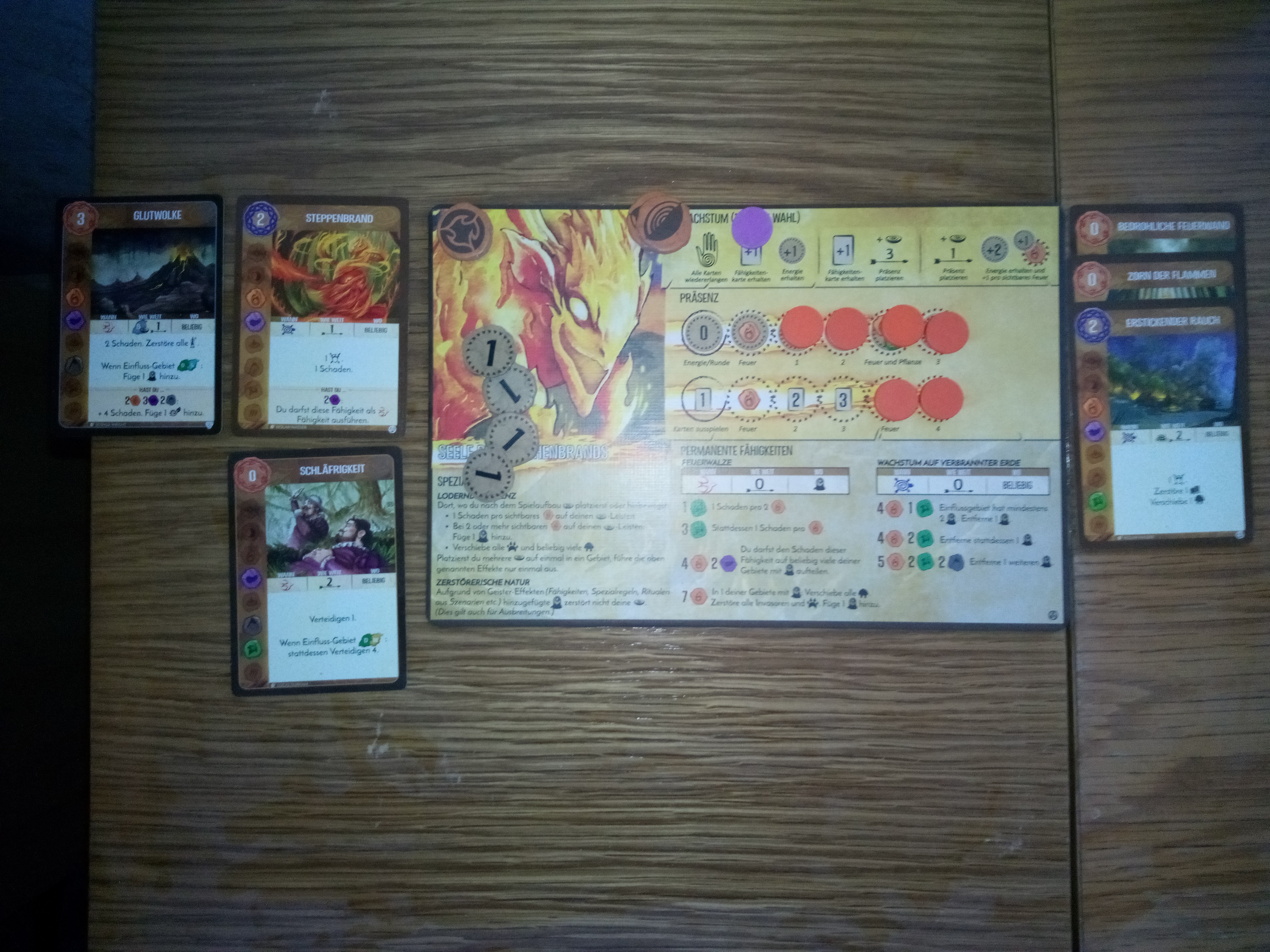 Wüten: Das Wüten in D3 wurde verhindert, sowie in D5. Durch die Willenskraft des Felsgesteins, wurde die Ödnis in D8 aus der Schachtel hinzugefügt.
