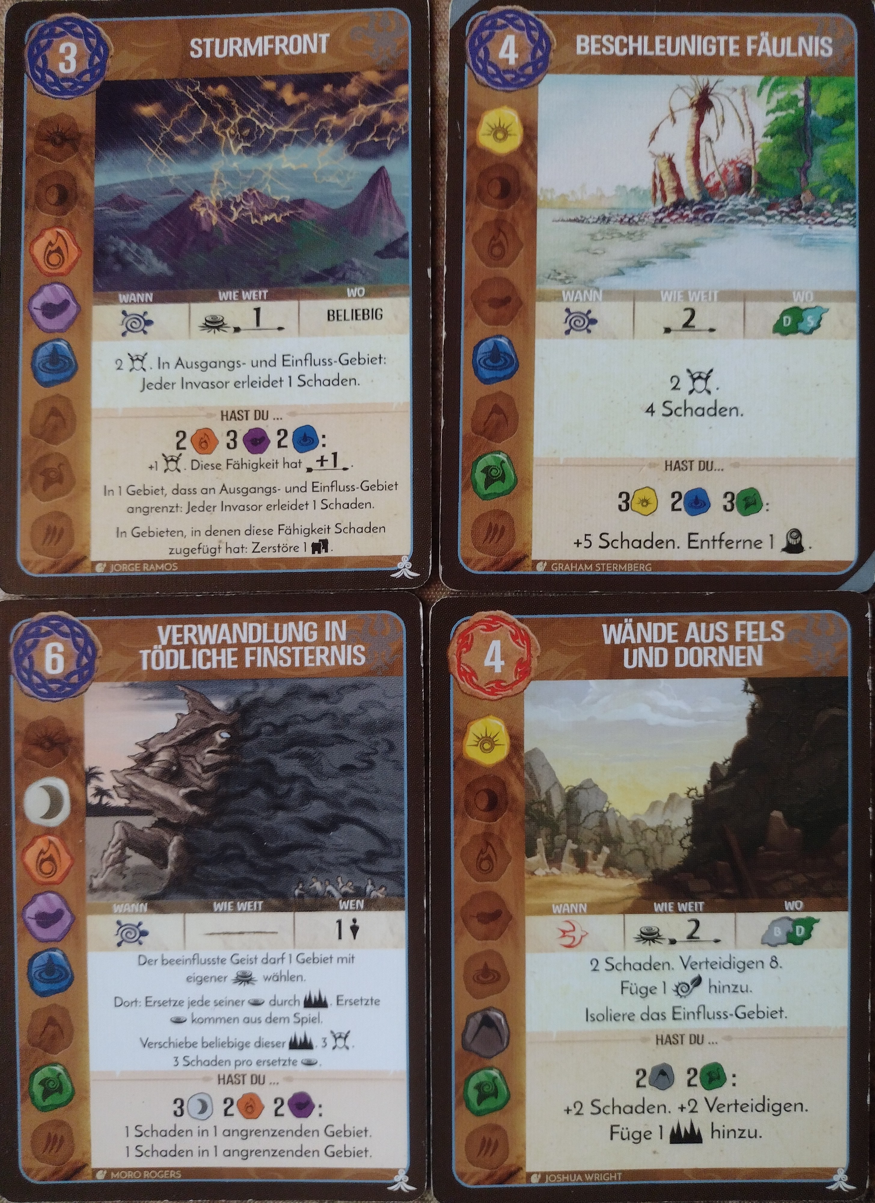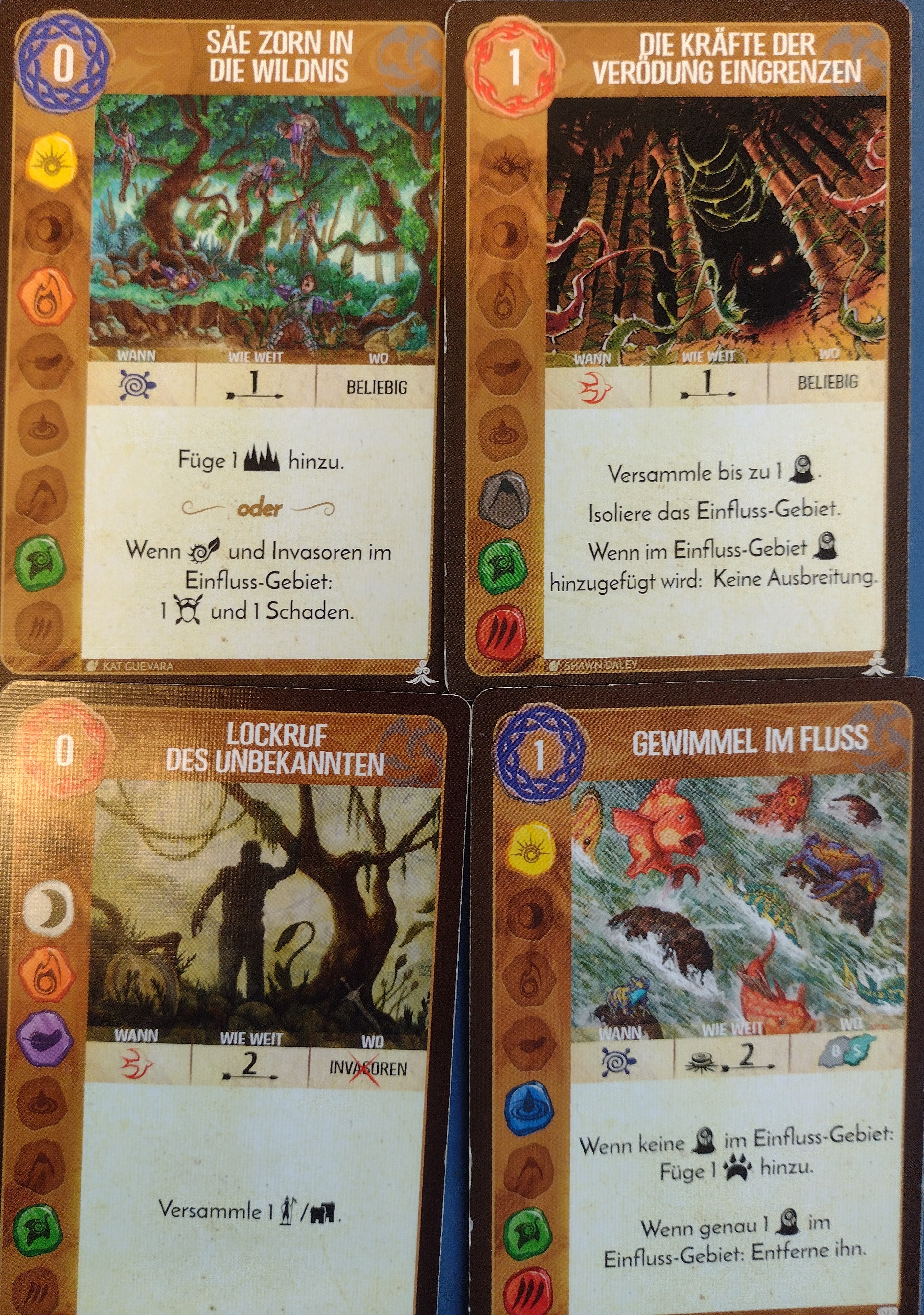 - "Beschleunigte Fäulnis" auf SO1: Dank der passenden Elemente erzeuge ich 2 Furcht und mache 9 Schaden. Davon werden 2 Städte zerstört (+4 Furcht) und 1 Dorf (+1 Furcht) sowie ein zweites Dorf beschädigt.