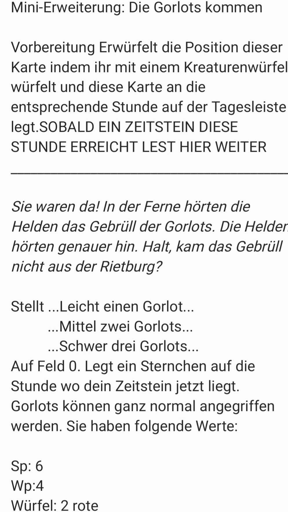 Die Gorlots kommen tatsächlich auch offiziell, nächstes Jahr in DFL. Siehe TroIIs Bericht von der SPIEL hier. Demonstrierte unsere Steppenechse prophetische Gaben?Legolas Grünblatt hat geschrieben:Ich mag das Design der Gorlots sehr und finde es schade das sie bisher noch nicht offizielle Figuren haben![]()