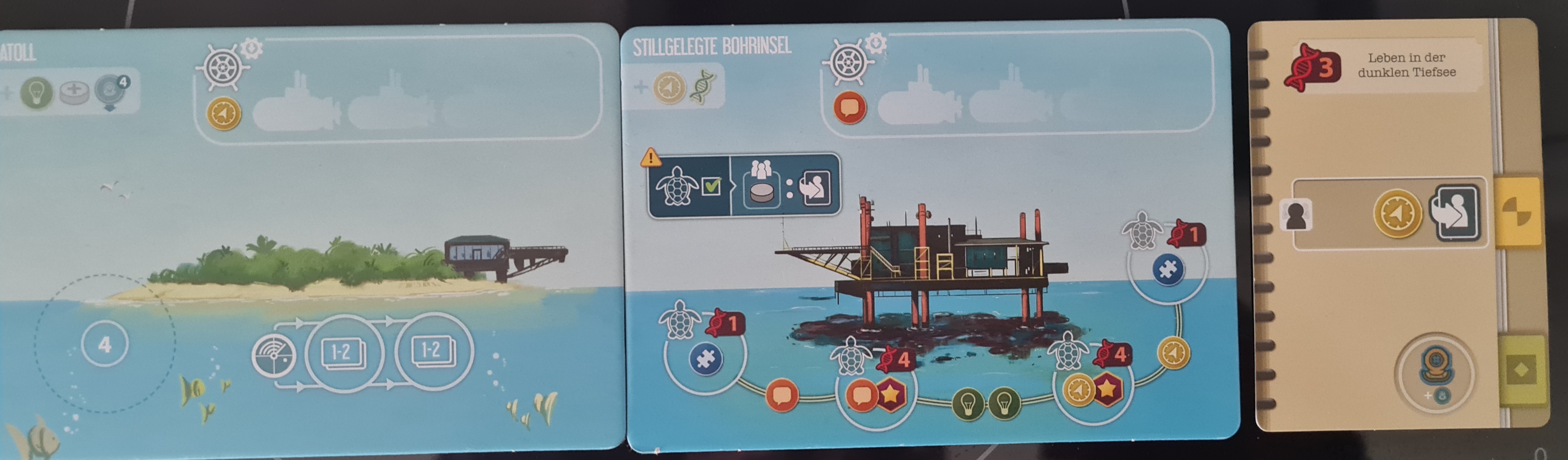 Wir erhalten ein neues Bonusziel, Teamfähig. Wir müssen in mindestens 9 Zonen jeweils eine unserer Scheiben (oder 1 U-Boot) liegen haben.