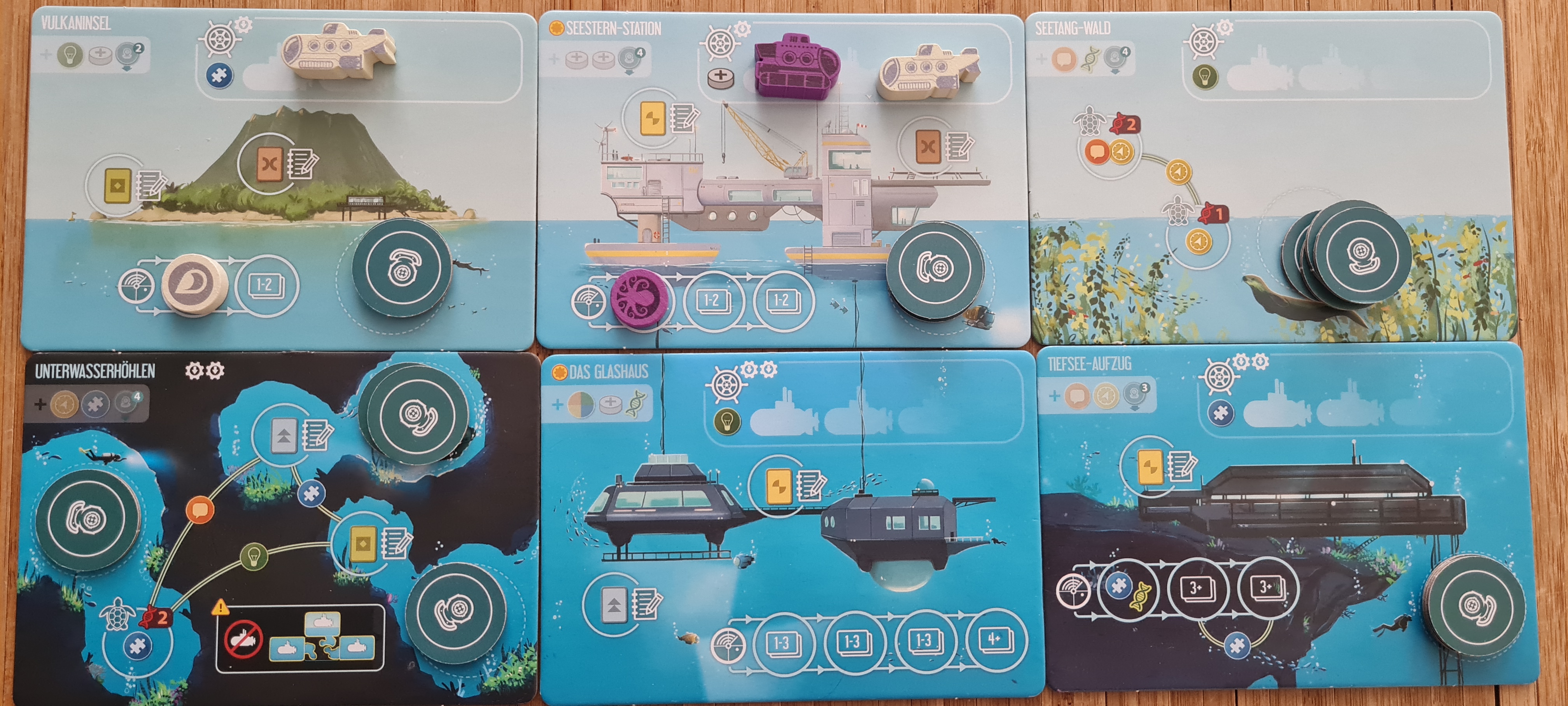 Ich wähle auch zwei Tiefe 2 Kacheln und erhalte die Delfinschule und die Unterwasserhöhlen.