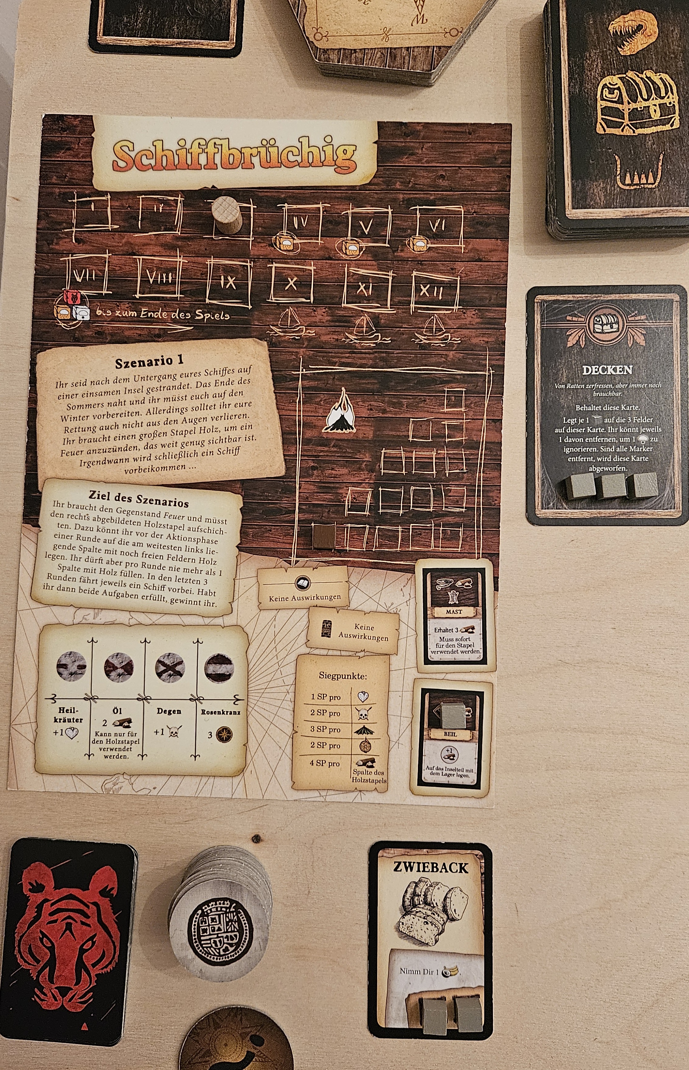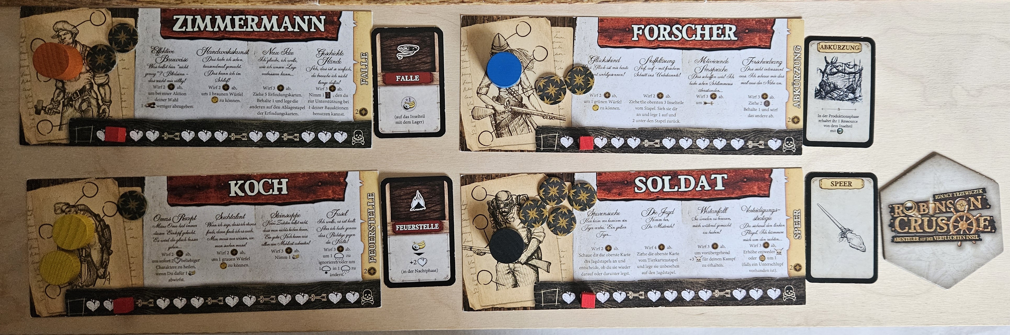 Abkürzung. Dadurch erhalten wir das Abkürzungs-Plättchen, das wir nach der Aktionsphase auf ein benachbartes Inselteil (der Strand würde sich da am ehesten anbieten) legen dürfen. In der Produktionsphase bekommen wir von diesem Inselteil eine weitere Ressource (die wir uns aussuchen dürfen). Außerdem erhält die Forscherin 2 Entschlossenheitsplättchen.