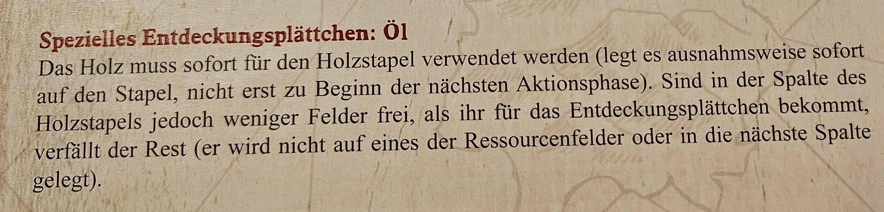 Seh ich das richtig, dass dies einfach 2 Holz sind, die wir jederzeit für den Holzstapel verwenden können, also auch nach der Aktionsphase, wenn uns das Öl zur Verfügung steht? Oder geht das auch nur vor der Aktionsphase und nach der Plannungsphase?