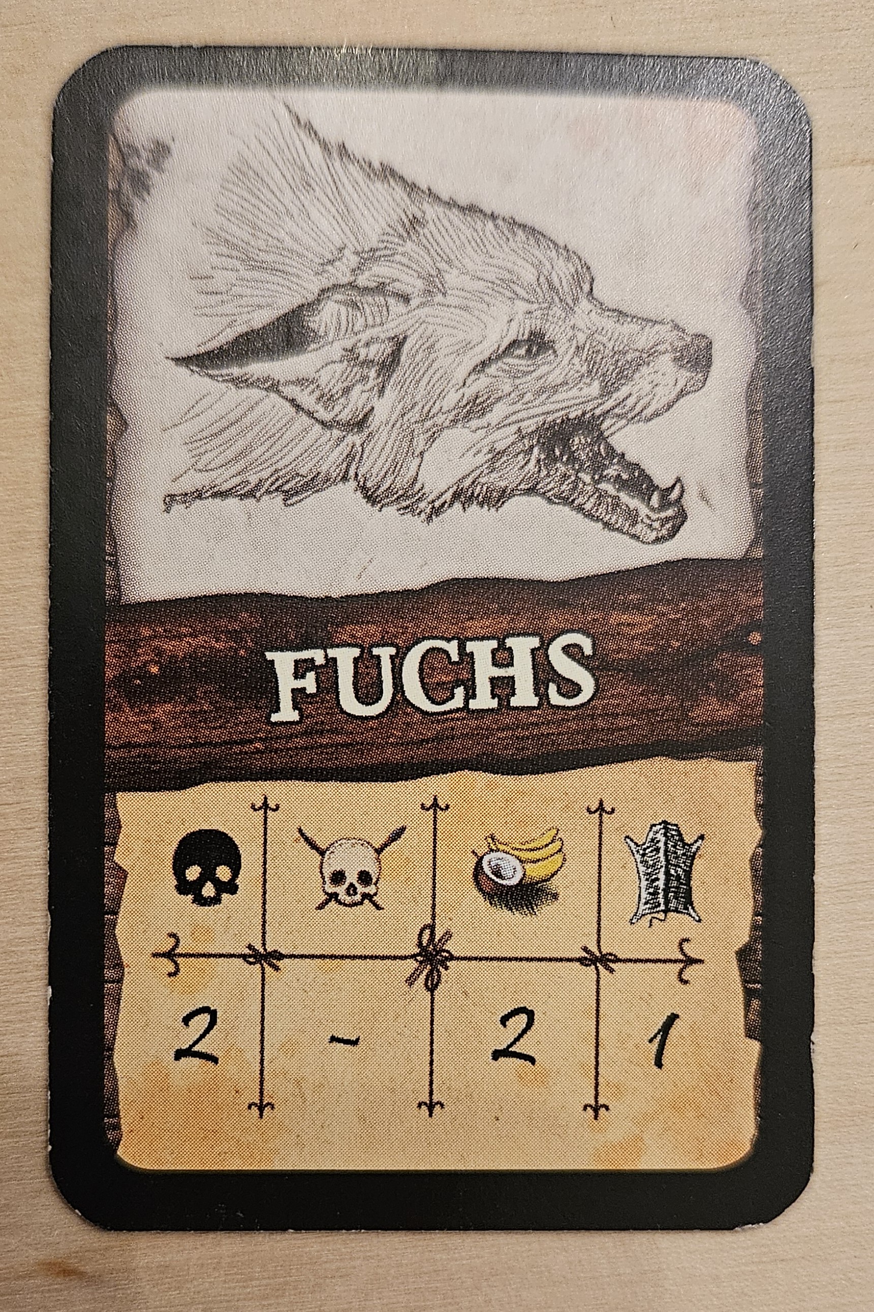 ...mit einem "Sturm" (eine der grauen Abenteuerkarten, die in den Ereignisstapel gemischt wurden). Dadurch wird das Sturmplättchen auf das Wetterfeld gelegt. Wenn wir zur Wetterphase kommen, wird zum einen ganz normal der Regenwürfel geworfen. Zusätzlich müssen wir jetzt auch noch auf einen Sturm achten. Durch den Sturm müssen wir in der Wetterphase unsere Palisadenstärke um 1 verringern. Können wir das nicht, erleiden alle Charaktere 1 Wunde. Aktuell beträgt unsere Palisadenstärke 0.