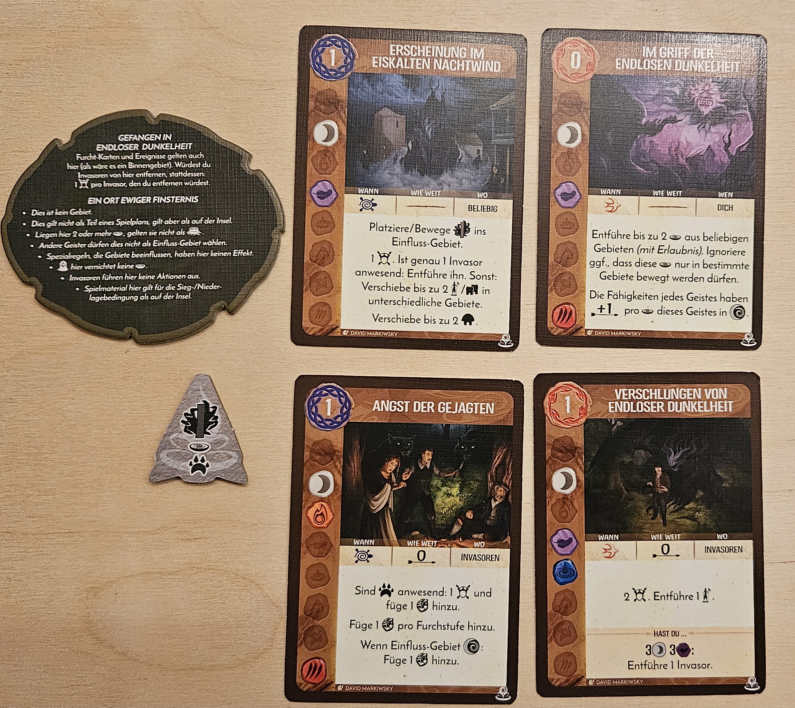 Was ich aber schon mal tun kann, ist die neuen Geister vorzustellen. Und für Beachsearcher (falls du nicht selbst nachschauen möchtest, da du die beiden Erweiterungen schon hast, wenn ich mich recht erinnere) auch noch die Regeln zu Bestien, Seuchen, Wildnis, etc.