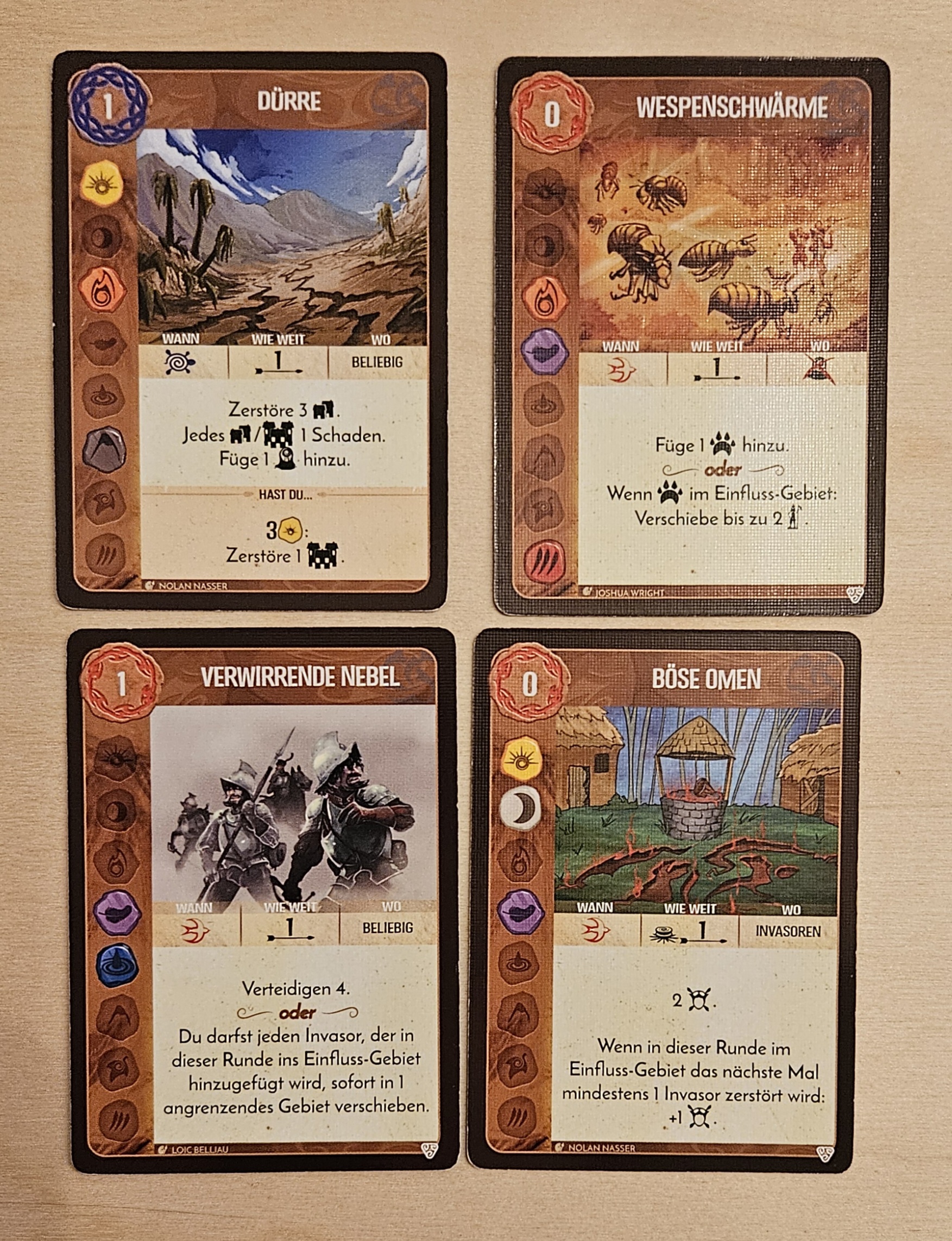 Wachstumsoption 1: Ich nehme alle Karten auf und erhalte eine Schwache Fähigkeit: Verwirrende Nebel. Ich erhalte +1 Energie, da kein Feuerelement.