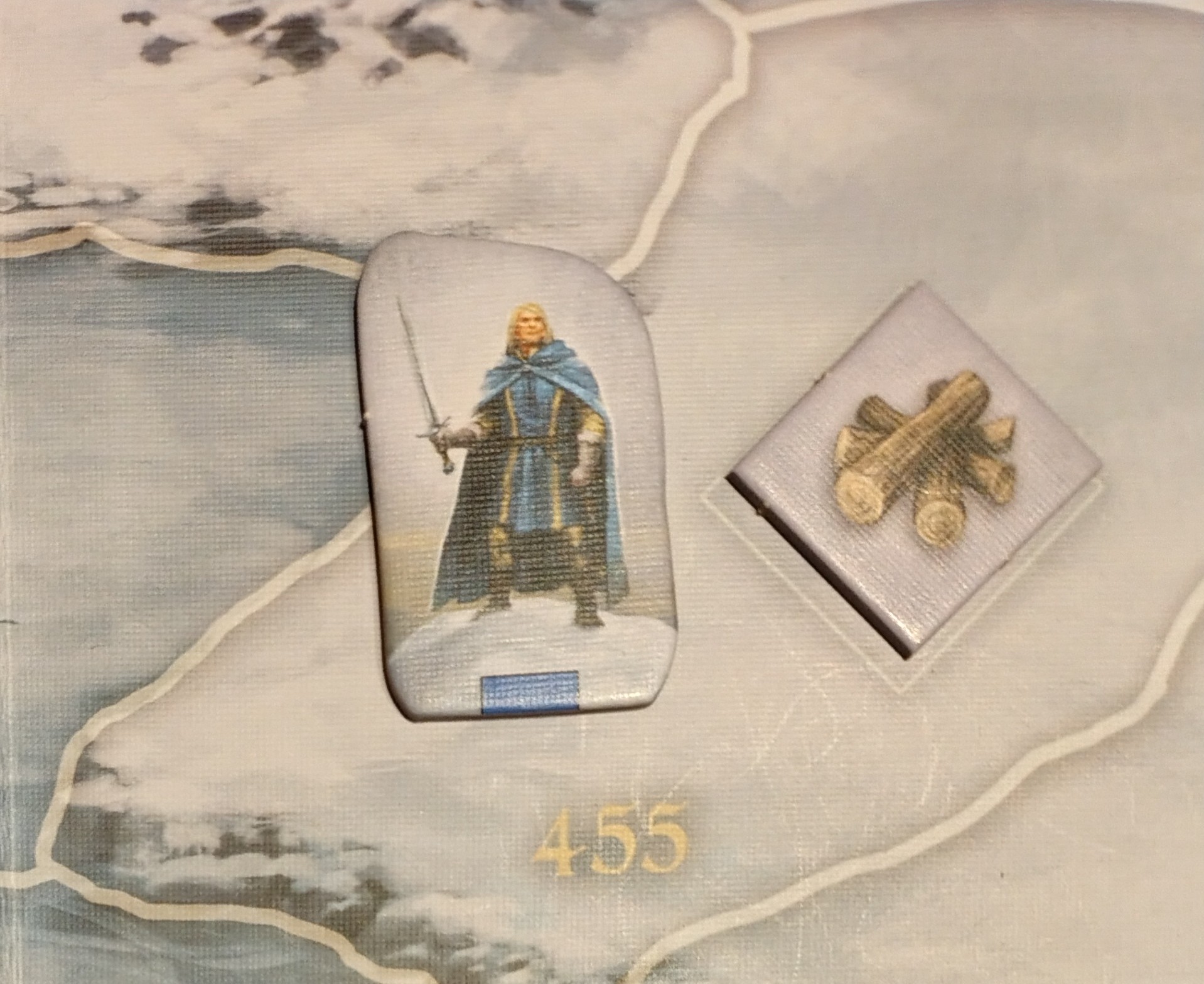 Es sind Zielmarker bei den Grehon, auf auf Feld 438 und in der Pfahlbausiedlung. Wenn wir so ein Feld betreten, wird eine Karte vorgelesen. Der Zielmarker wird dann wie ein Kraut eingesammelt und kann auch mit dem Falken verschickt werden. Wenn ein Held alle drei hat, wieder die Karte „Die Erkenntnis“ vorgelesen.