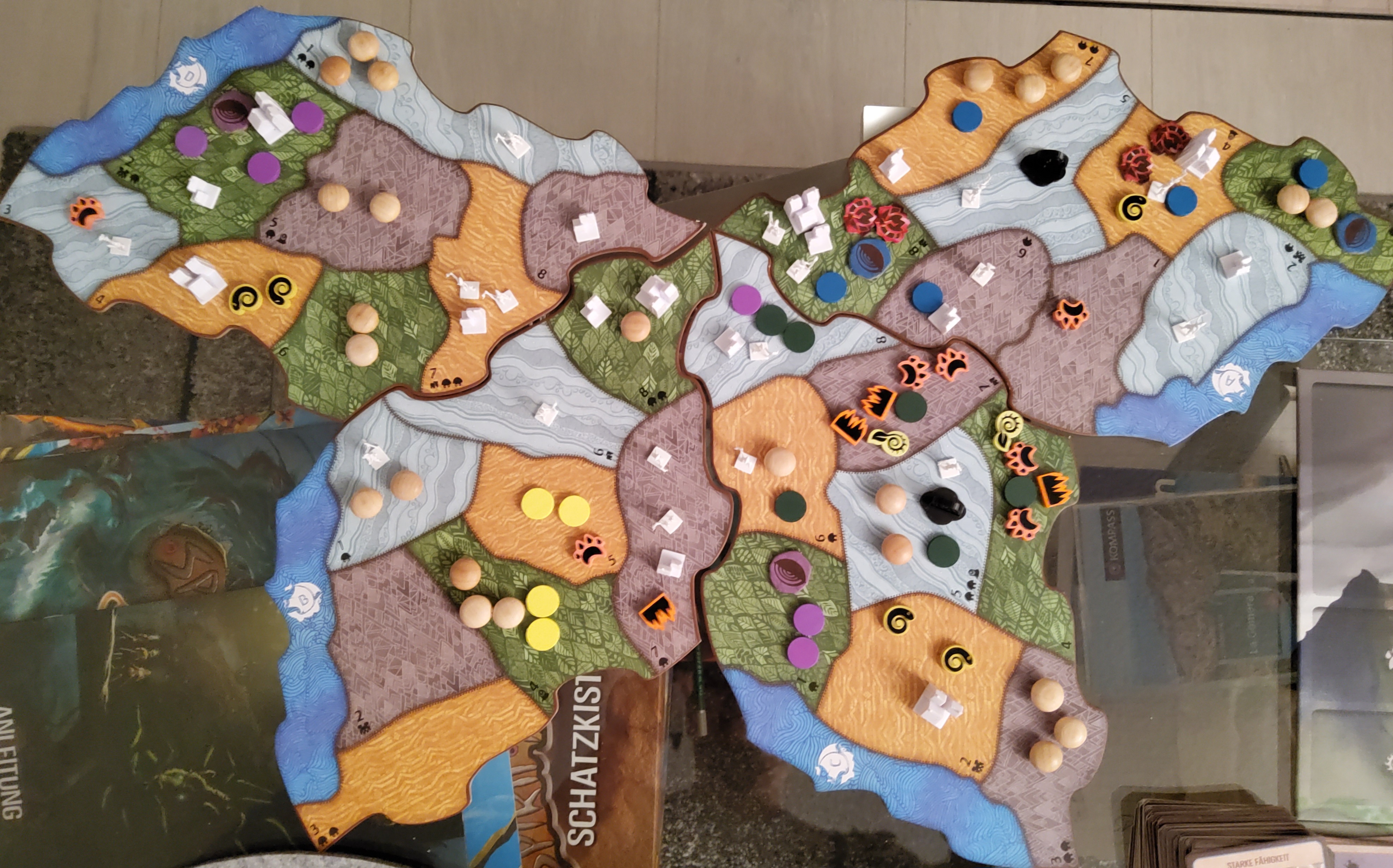 -Land ächzt unter tektonischer Spannung: Erdbebenplättchen nach A7, Verteidigen 3 nach A8 (Summe Verteidigen 6)
