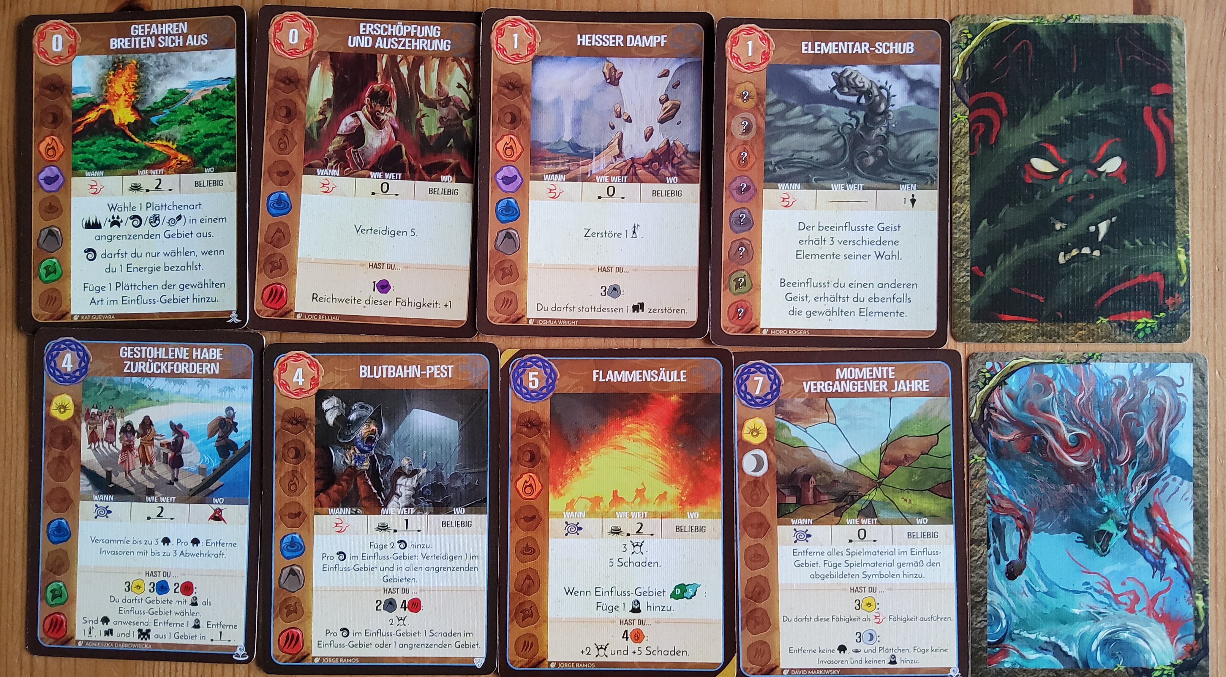 1. Wachstumsoption 1: -1 Energie, alle Karten wieder auf die Hand und ich ziehe eine neue (schwache) Fähigkeit: "Elementarschub"