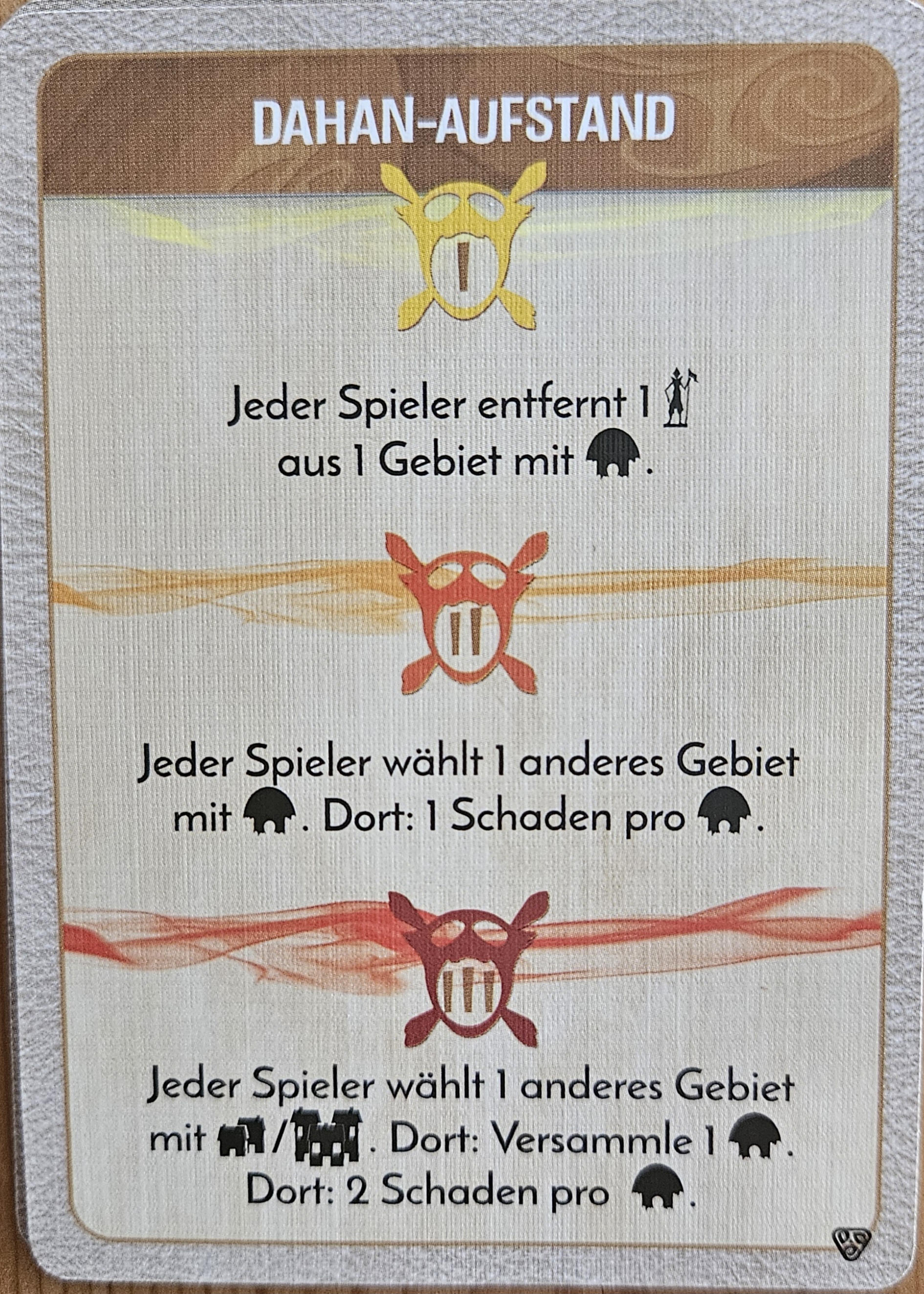- "Schwingen der Sonne" auf W7. Ich verschiebe 5 Dahan aus dem Gebiet nach O8. Verteidigung 5.