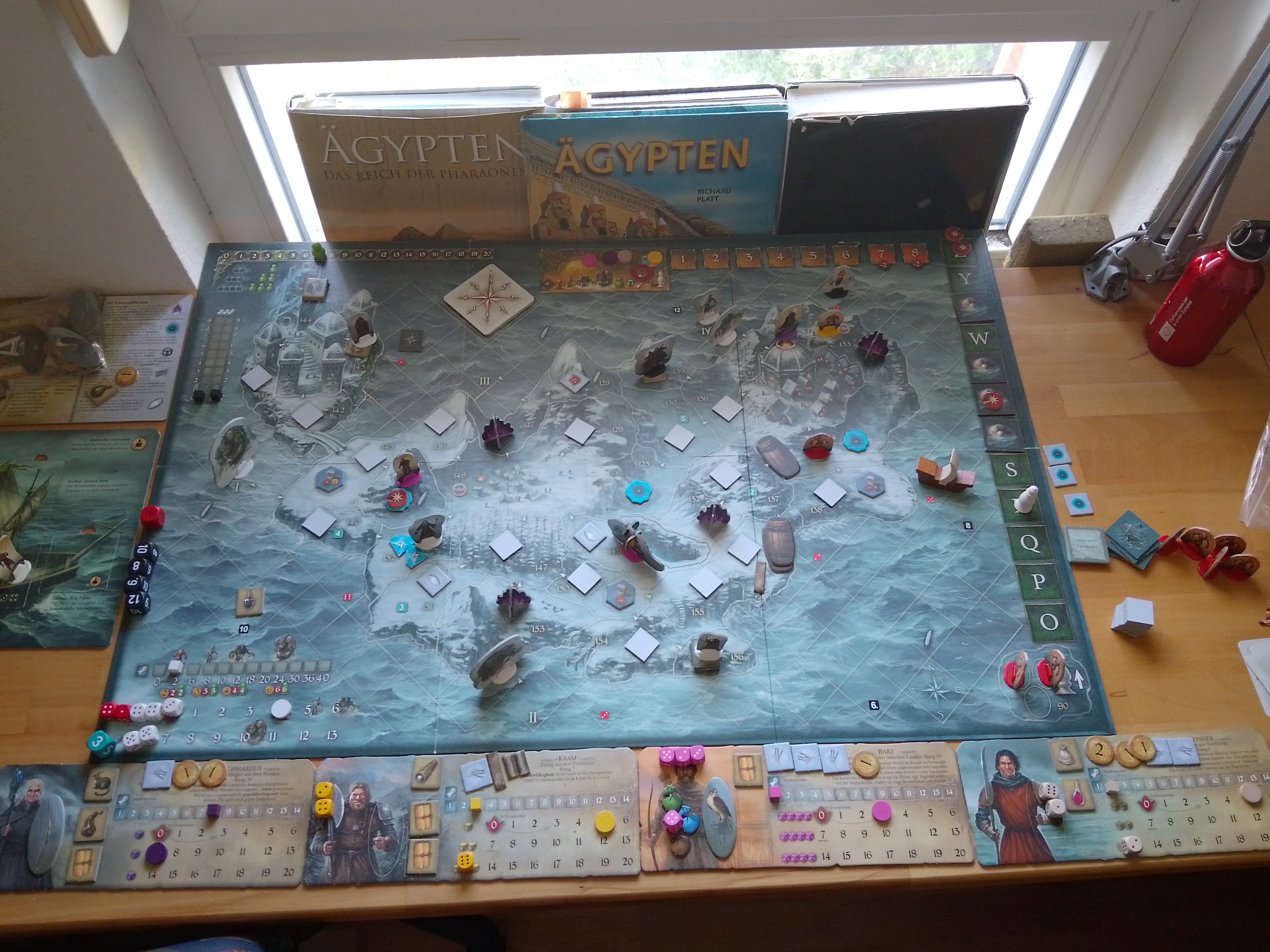 Die Nordbrunnen sind +1 TS auf 138, +1 Gold auf 145 und der WP-Brunnen auf 150. Die Gaben des Nordens erscheinen bei der roten 1, 2 und 3, die Nixe bei der roten 6. Außerdem das Fernrohr bei der schwarzen 6, das Gift bei 10 und der TdH bei 12.