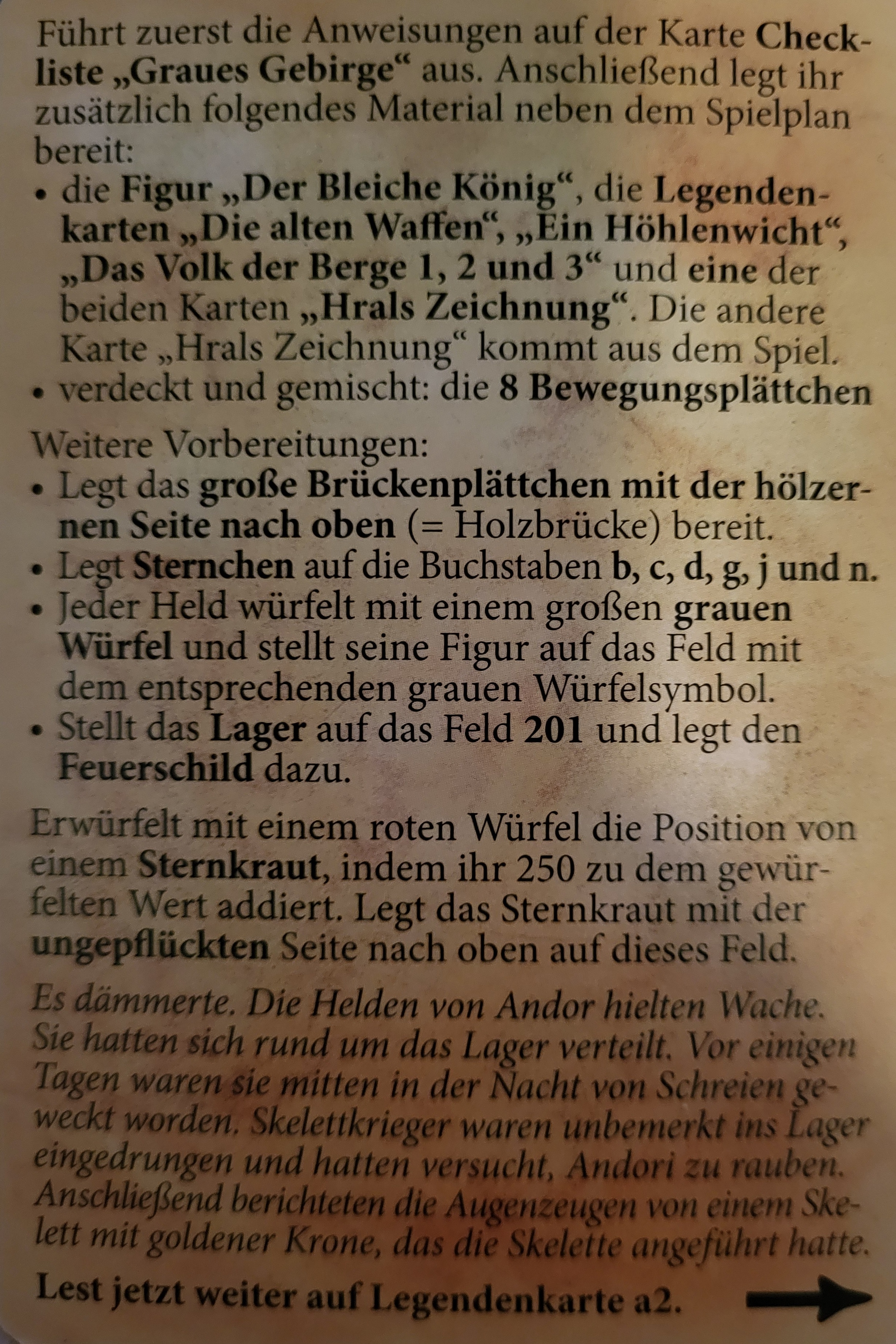 Die Helden machten sich bereit, den Bleichen König zu jagen. Das scheue Bergvolk weiß bestimmt etwas genaueres und Sie machten sich auf die Suche nach Ihnen. Thorn schaute in einer doch leeren Höhle nach und fand dabei einen roten Rubin, Darh sieht trotz Nebel einen Trinkschlauch und Eara erlernt einen neuen Zauber.