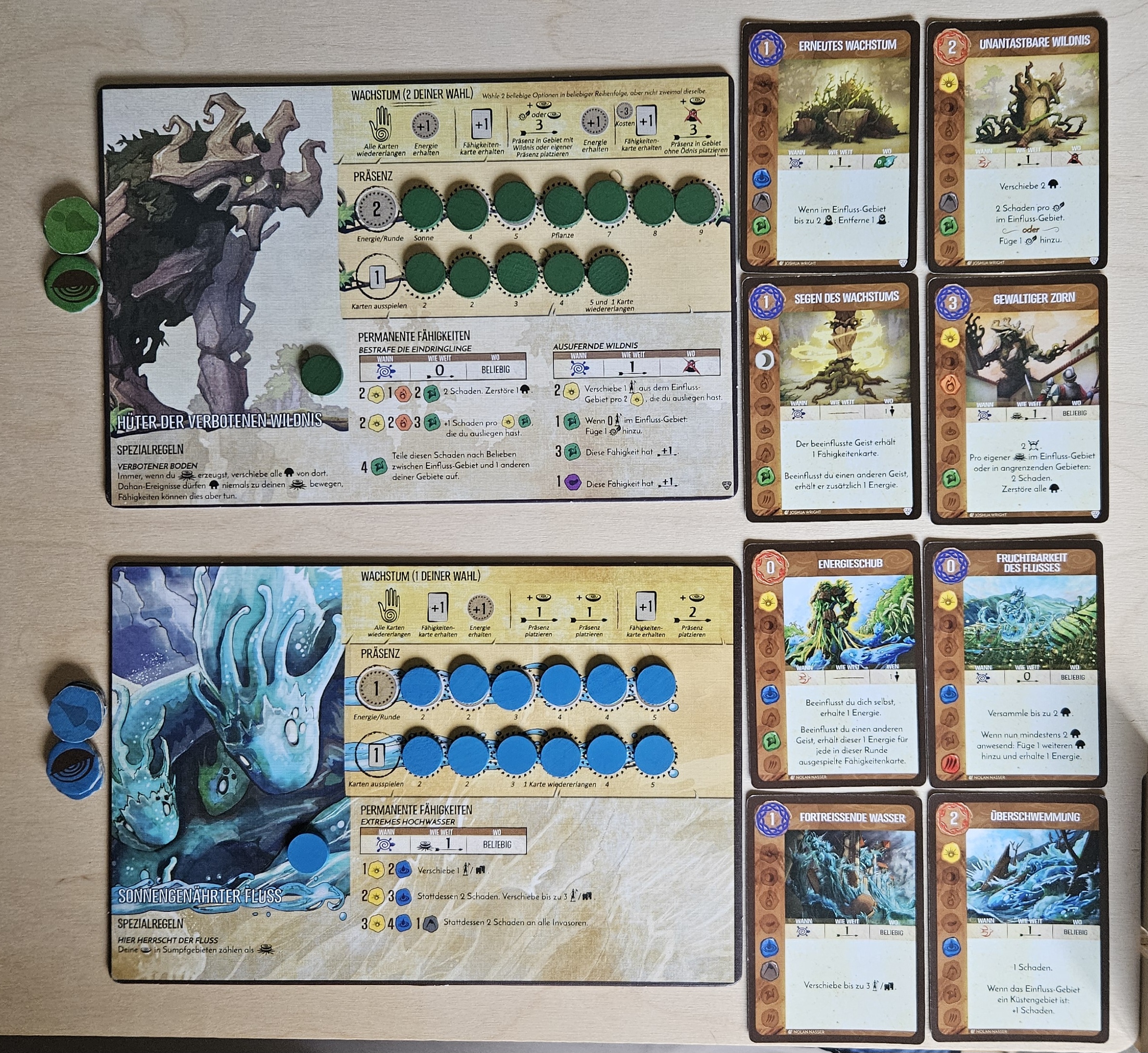 Zum erst 2. Mal treten wir mit 5 Spielern an. Und dieses Mal sogar gleich auf den thematischen Spielplänen.