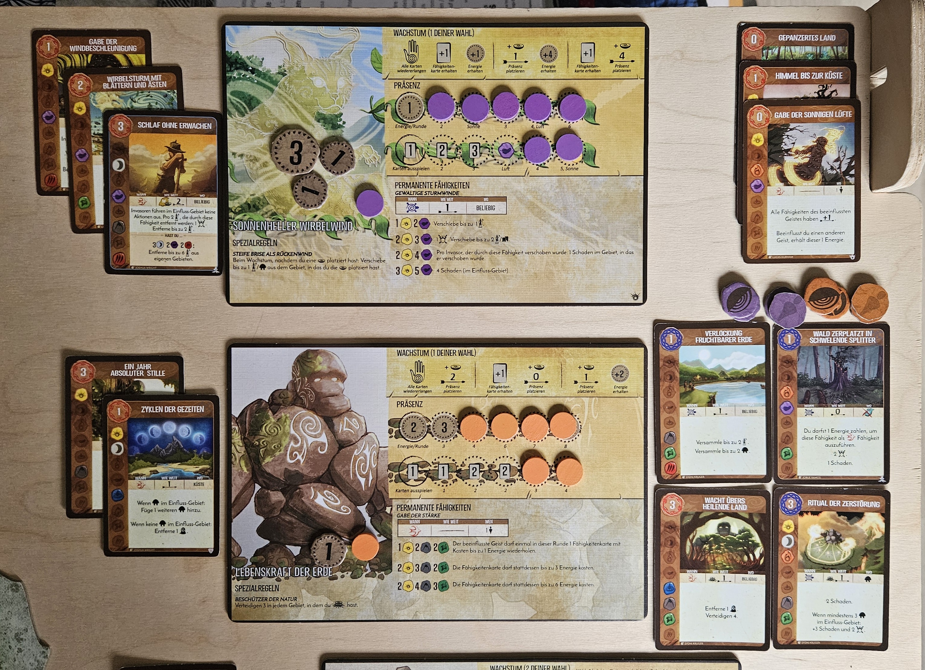 #Albus: Wie du jetzt gemerkt hast, mache ich es so, dass links vom Geistertableau die in dieser Runde ausgespielten Fähigkeit liegen. Rechts neben dem Tableau liegen die noch verfügbaren (wie bei der