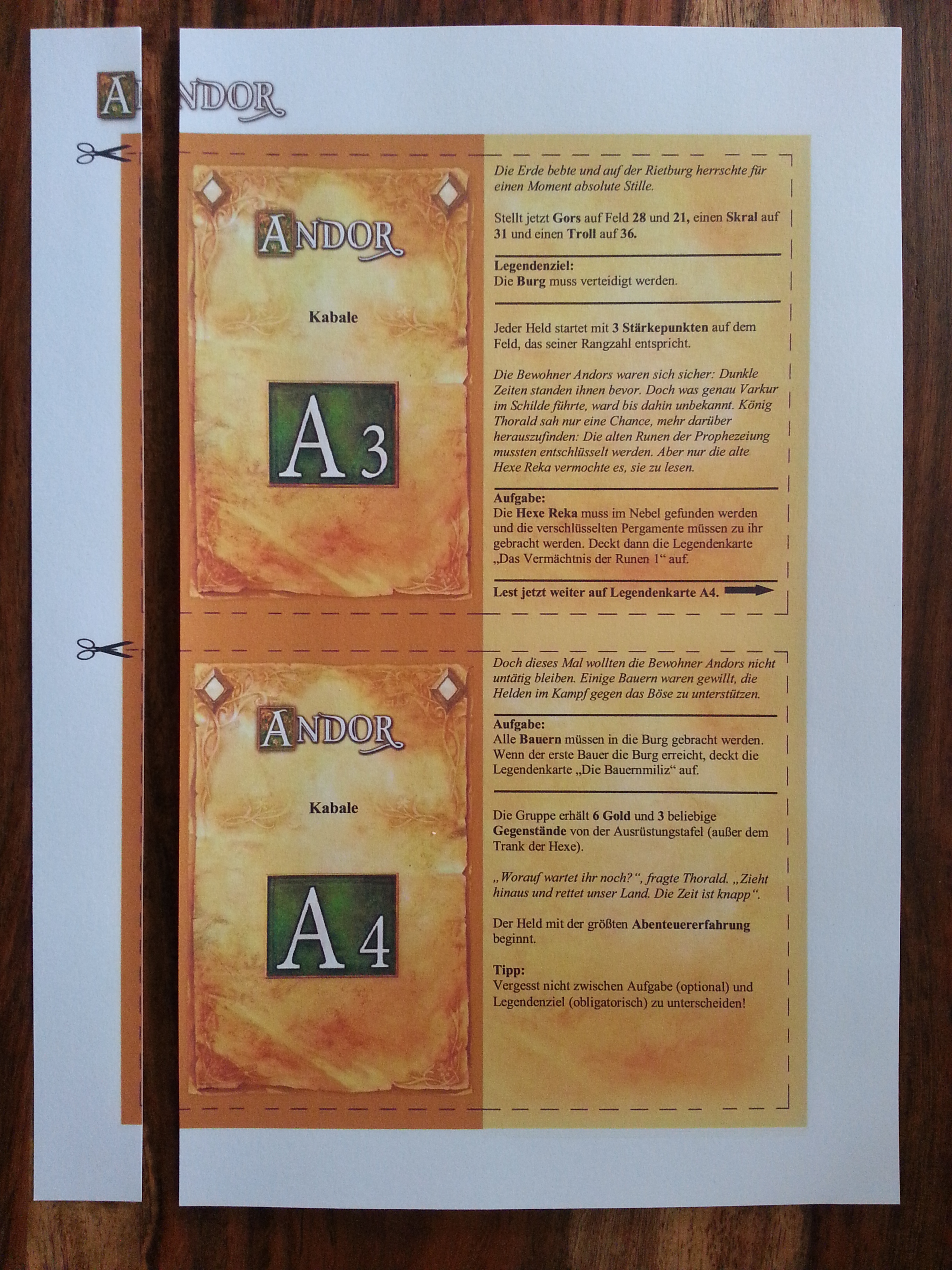 Bezüglich dem Basteln der Legendenkarten möchte ich auch noch kurz etwas sagen: Ich habe lange Zeit (ca. die ersten 40 Legenden) diese, wie viele hier, zu Hause selbst zusammengebastelt. Da es aber schon etwas zeitaufwändig ist, habe ich mich nun für eine neue Variante entschieden. Ich habe sämtlich Legenden (und auch den Soundtrack) auf meinem Tablet und benutze dieses anstatt der gebastelten Legendenkarten und es funktioniert wunderbar! Wer das also mal ausprobieren will, dem kann ich es nur empfehlen