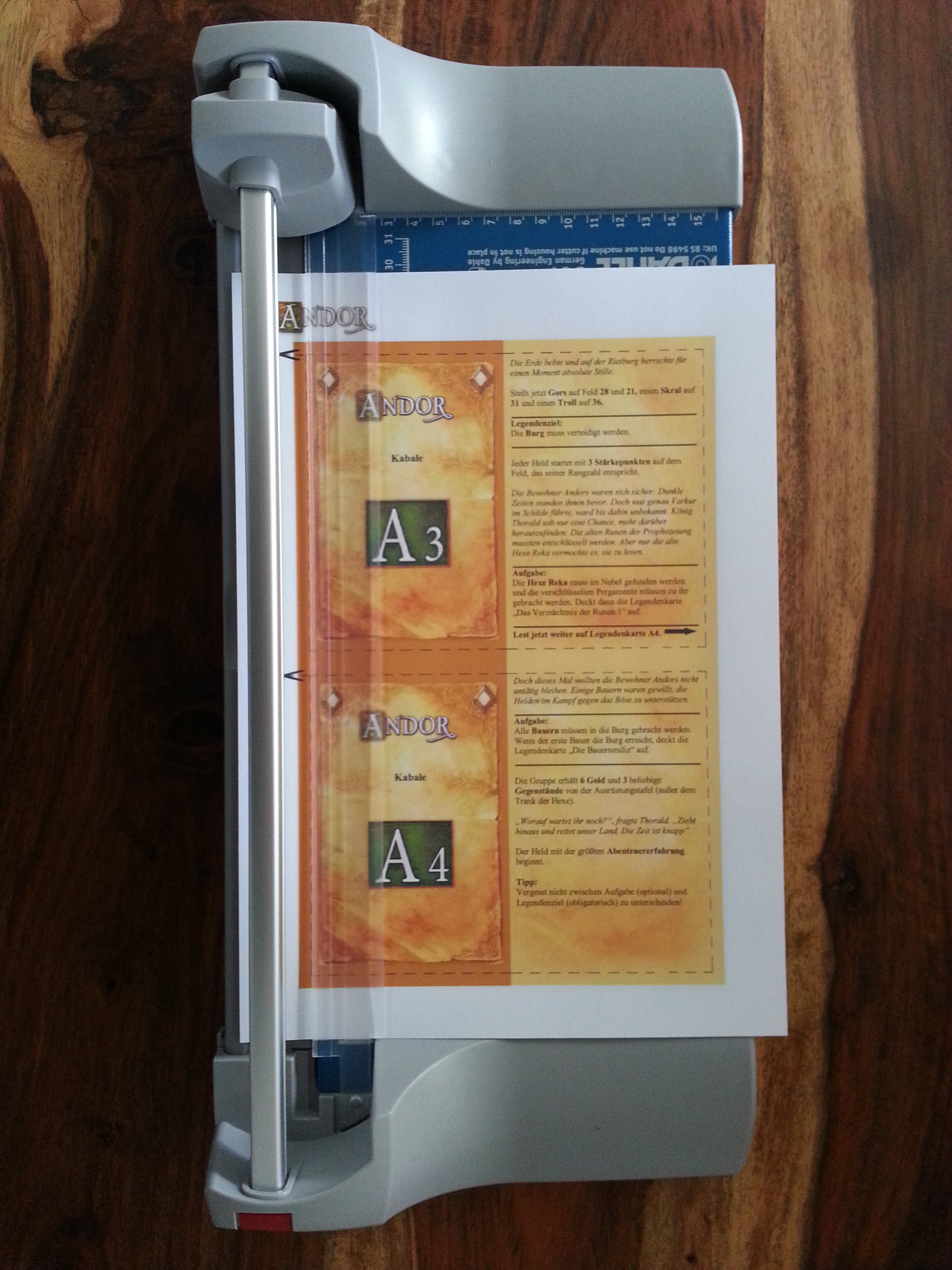 Bezüglich dem Basteln der Legendenkarten möchte ich auch noch kurz etwas sagen: Ich habe lange Zeit (ca. die ersten 40 Legenden) diese, wie viele hier, zu Hause selbst zusammengebastelt. Da es aber schon etwas zeitaufwändig ist, habe ich mich nun für eine neue Variante entschieden. Ich habe sämtlich Legenden (und auch den Soundtrack) auf meinem Tablet und benutze dieses anstatt der gebastelten Legendenkarten und es funktioniert wunderbar! Wer das also mal ausprobieren will, dem kann ich es nur empfehlen