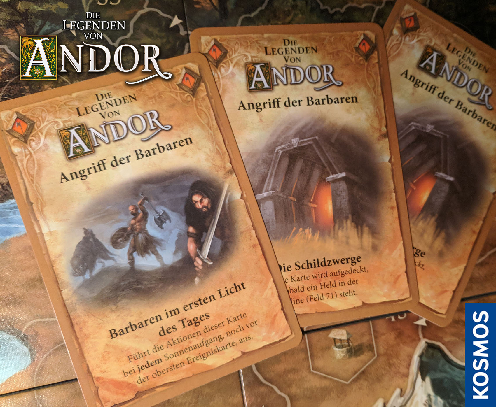 Zur letzteren hier noch einmal die Info, dass die Ersatzkarten für die Legende „Angriff der Barbaren“ ab sofort im KOSMOS-Ersatzteil-Service kostenlos bestellt werden können: