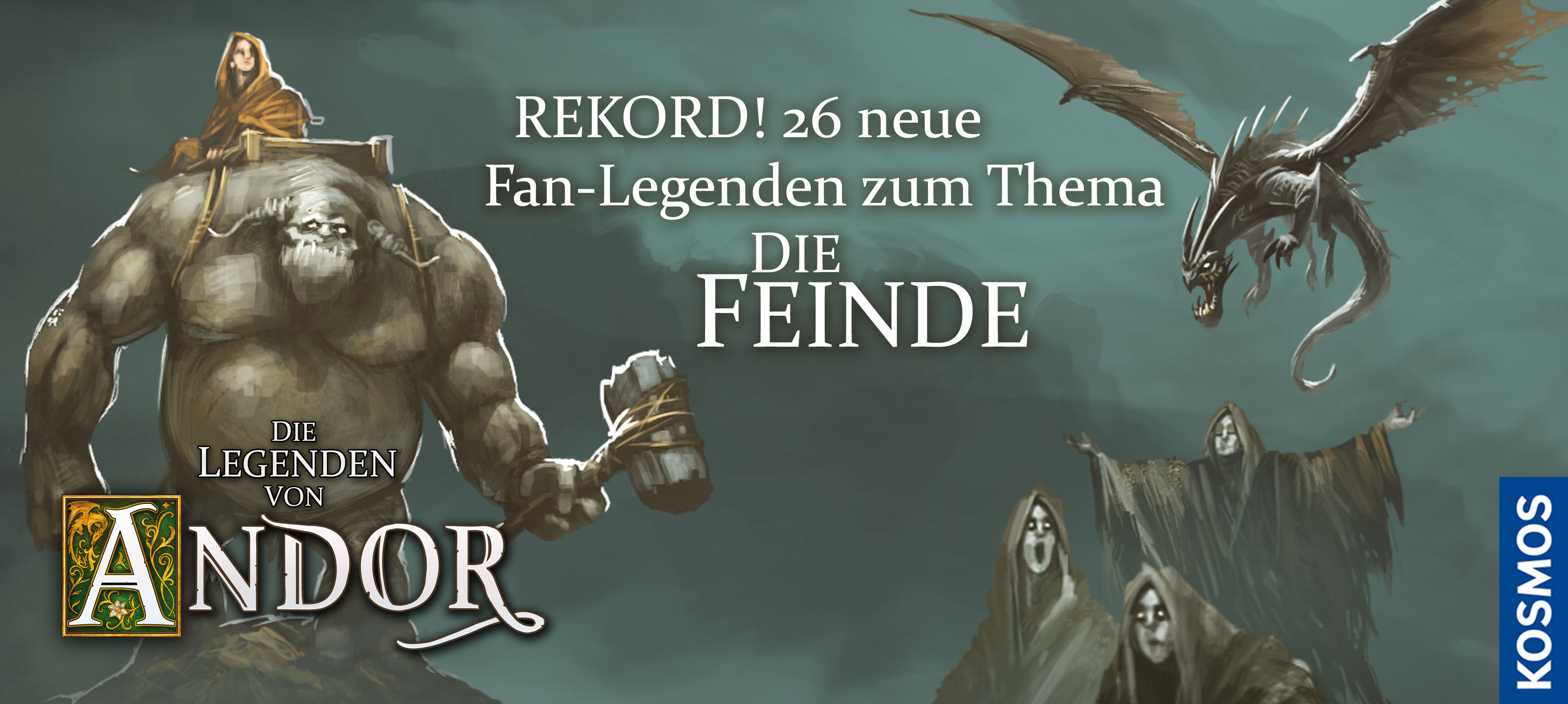 Doch das war noch lange nicht alles! Denn in 2017 wurde zum dritten Mal zu einem Fan-Legenden-Wettbewerb aufgerufen. Das Thema waren „Die Feinde von Andor“ und mit 26 neuen Legenden wurde der Rekord gebrochen. Das Besondere an diesen neuen Fan-Legenden ist natürlich, dass sie auf unterschiedlichen Spielplänen spielen.