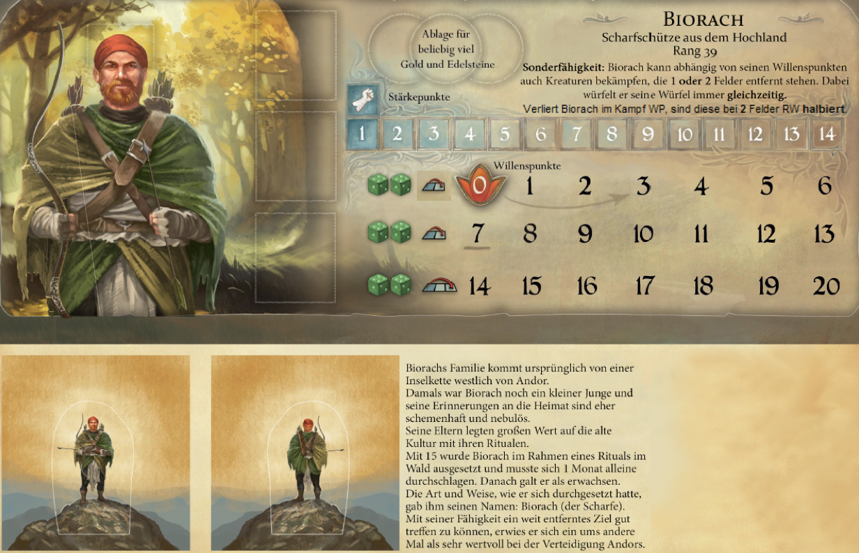 Der Scharfschütze wurde nicht gross verändert – nun verliert er bloss die Hälfte der WP, wenn er in einem zwei-Felder-Fernkampf WP verlieren würde. Dafür muss er in seiner untersten WP-Reihe sein, einen weit entfernten Gegner angreifen und dazu noch WP verlieren – es hängt natürlich vom Spielstil ab, wie oft man risikoreiche Kämpfe beginnt, aber ich glaube, dass dieser Fall nur relativ selten auftreten wird und die Anpassung somit keinen grossen Einfluss auf den Helden hat.