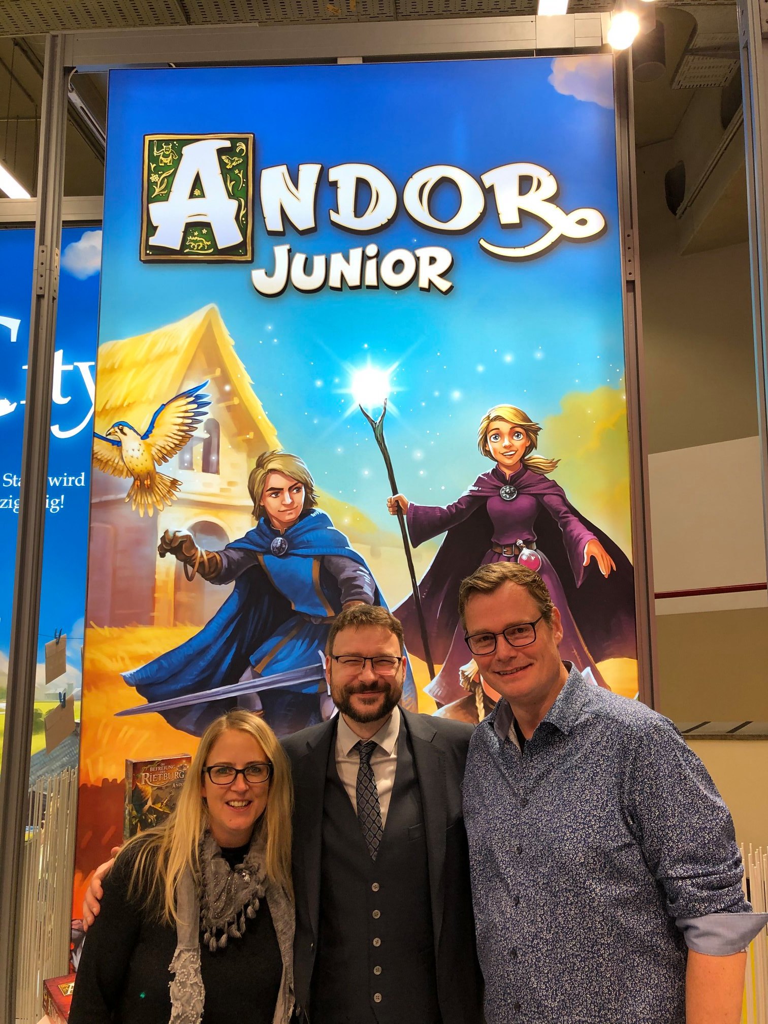 Mit spielerischen Grüßen aus Nürnberg von der Spielwarenmesse!Autoren und Illustrator vereint: Inka Brand, Michael Menzel, Markus Brand (v.l.n.r.)Freut ihr euch auch schon auf den Start von Andor Junior? Um euch die Wartezeit ein wenig zu verkürzen, könnt ihr euch hier die ersten Details anschauen: