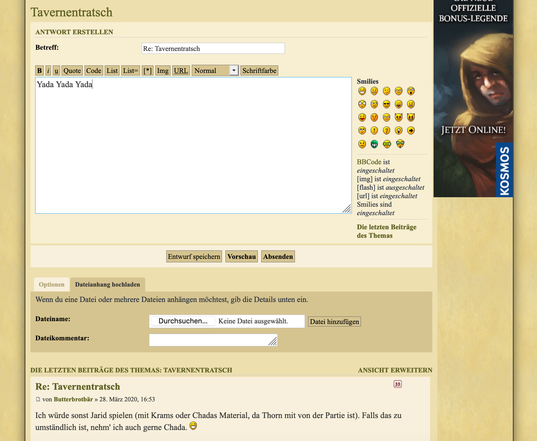 Vergleicht die beiden Screenshots (der obere ist von BBB, der untere ist von der Sockenpuppe). Die Sockenpuppe hat neben dem "Optionen"-Button einen "Dateianhang hochladen"-Button, welcher bei BBB einfach nicht vorhanden ist.
