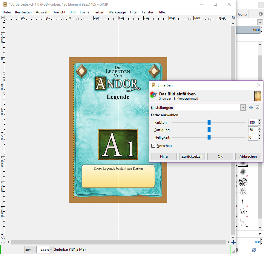Mit diesen Einstellungen könnt ihr wirklich jede Farbe bekommen. Experimentiert einfach ein bisschen damit. Für ein Braun benötigt man zum Beispiel ein dunkles rot oder orange
