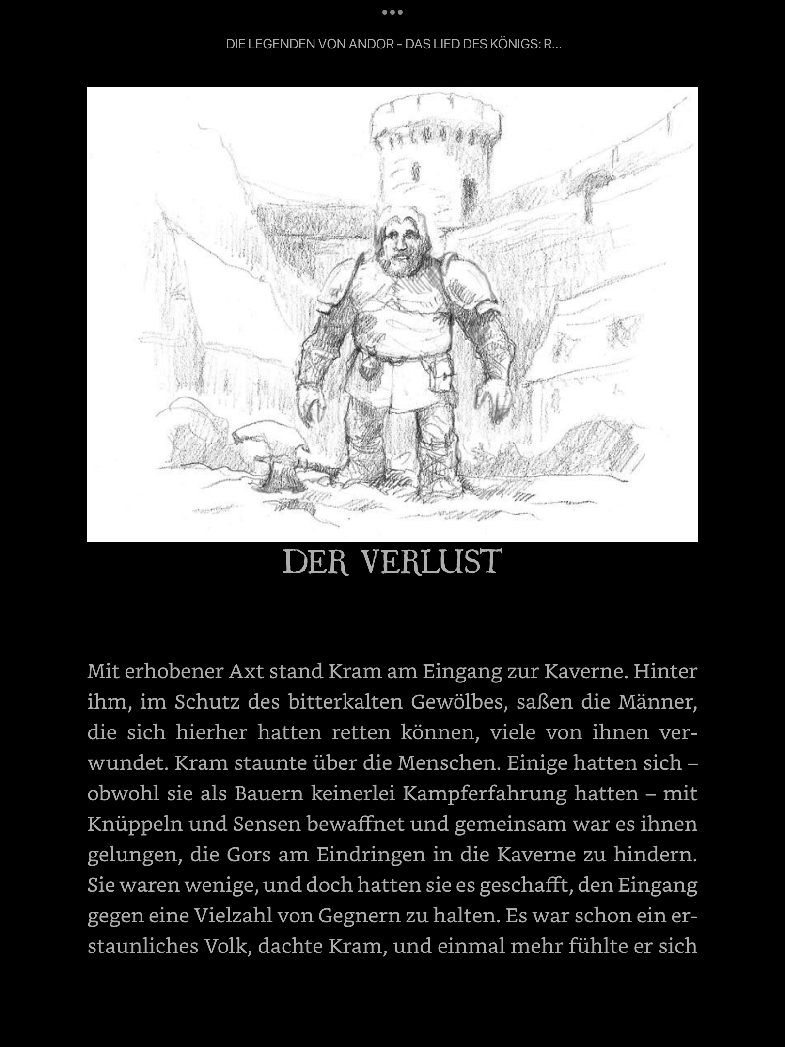Butterbrotbär hat geschrieben:Wenn der Zwerg (wenn es denn ein Zwerg ist) einem bereits bekannten Andor-Bild entnommen wäre, hätte ihn höchstwahrscheinlich bereits jemand gefunden. Von der Statur her käme natürlich Kram in Frage, auch wenn die lange Axt nicht zwingend passt. Und das Gesicht guckt so grimmig wie die vier Zwergenstatuen aus AG...