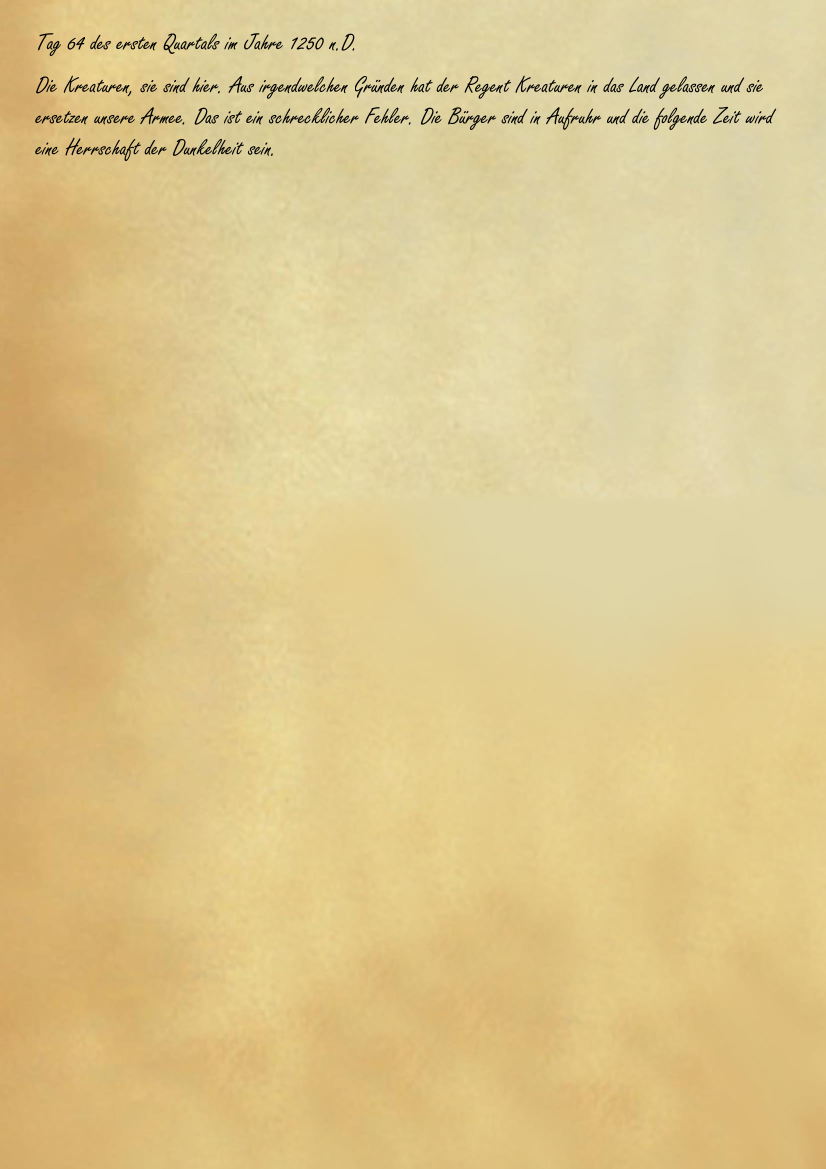 In einer dunklen Kammer erschien plötzlich Ühra. Sein Teleportationszauber hatte gewirkt. Nun gab er den Stein einem anderen Wesen und sprach: „Es ist vollbracht, Meister. Ihr werdet erneut aufsteigen können.“ Das andere Wesen, welches zuvor nur ein Schatten gewesen war, nutzte die Magie des Steins und manifestierte seine Gestalt. Ühra gegenüber stand der dunkle Zauberer Varkur, welcher nun nicht mehr Qurun war, sondern wieder er selbst. Nicht einmal die Krahder hatten Andor brechen können, aber er würde es schaffen. Sie waren nicht auf ihn vorbereitet.