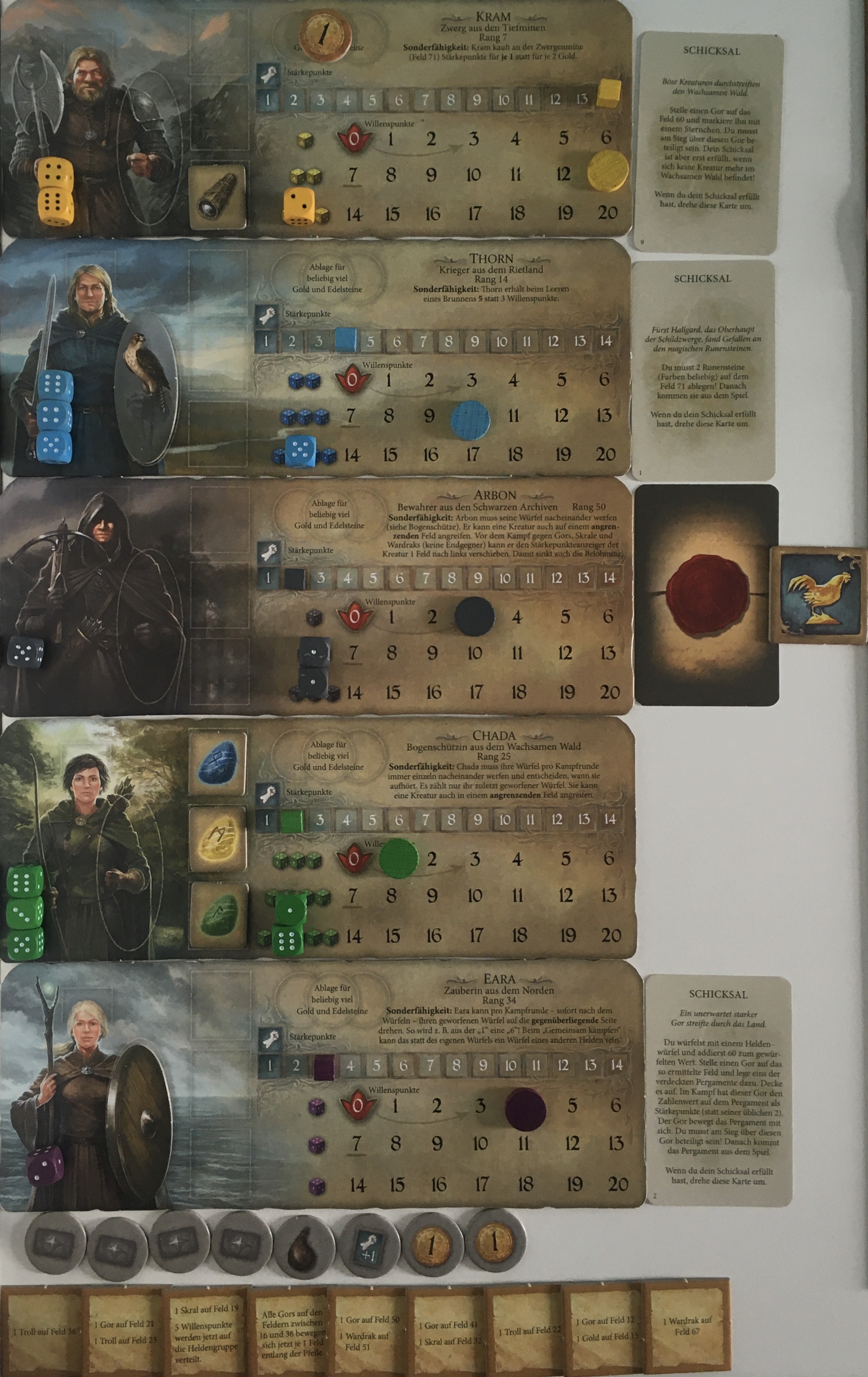 - Alle Helden müssen ihr Schicksal erfüllen, dann wird eine der Karten "Dunkle Magie" aufgedeckt