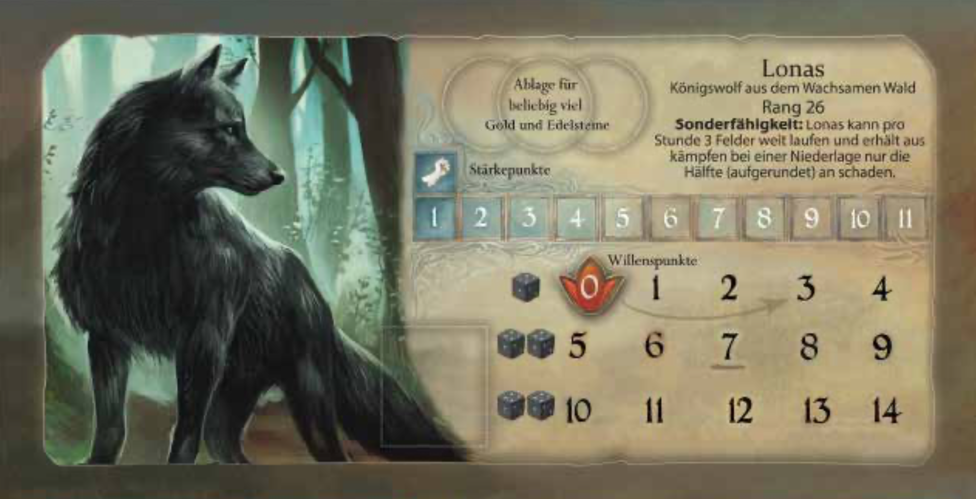 3 Felder pro Stunde ist schon verflixt geschwind. Die fehlenden Ablagefelder helfen sicher beim Ausgleich, aber dieser Lonas könnte dennoch ein ziemlich starker Held sein.